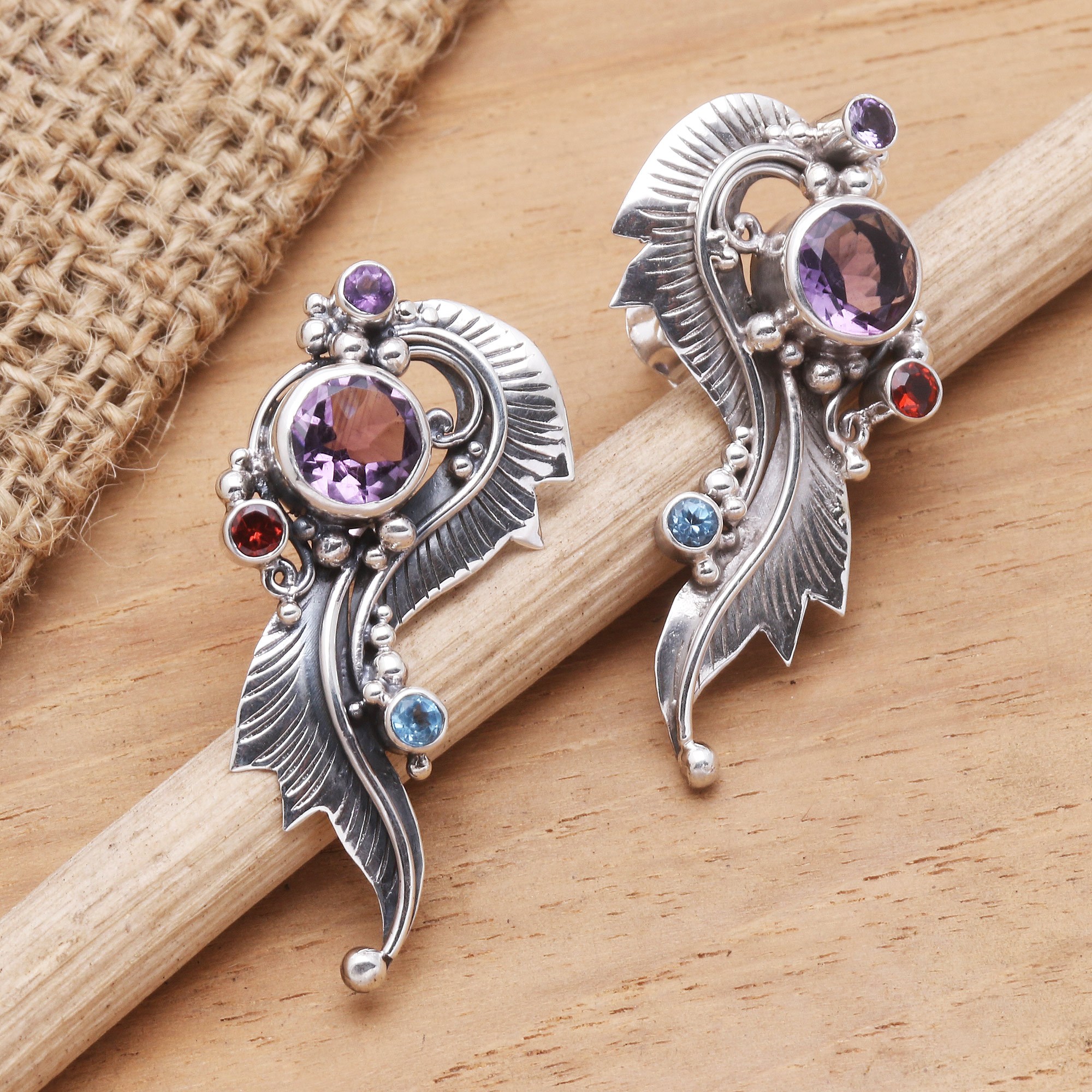 • 925 sterling silver, amethyst, garnet, blue topaz