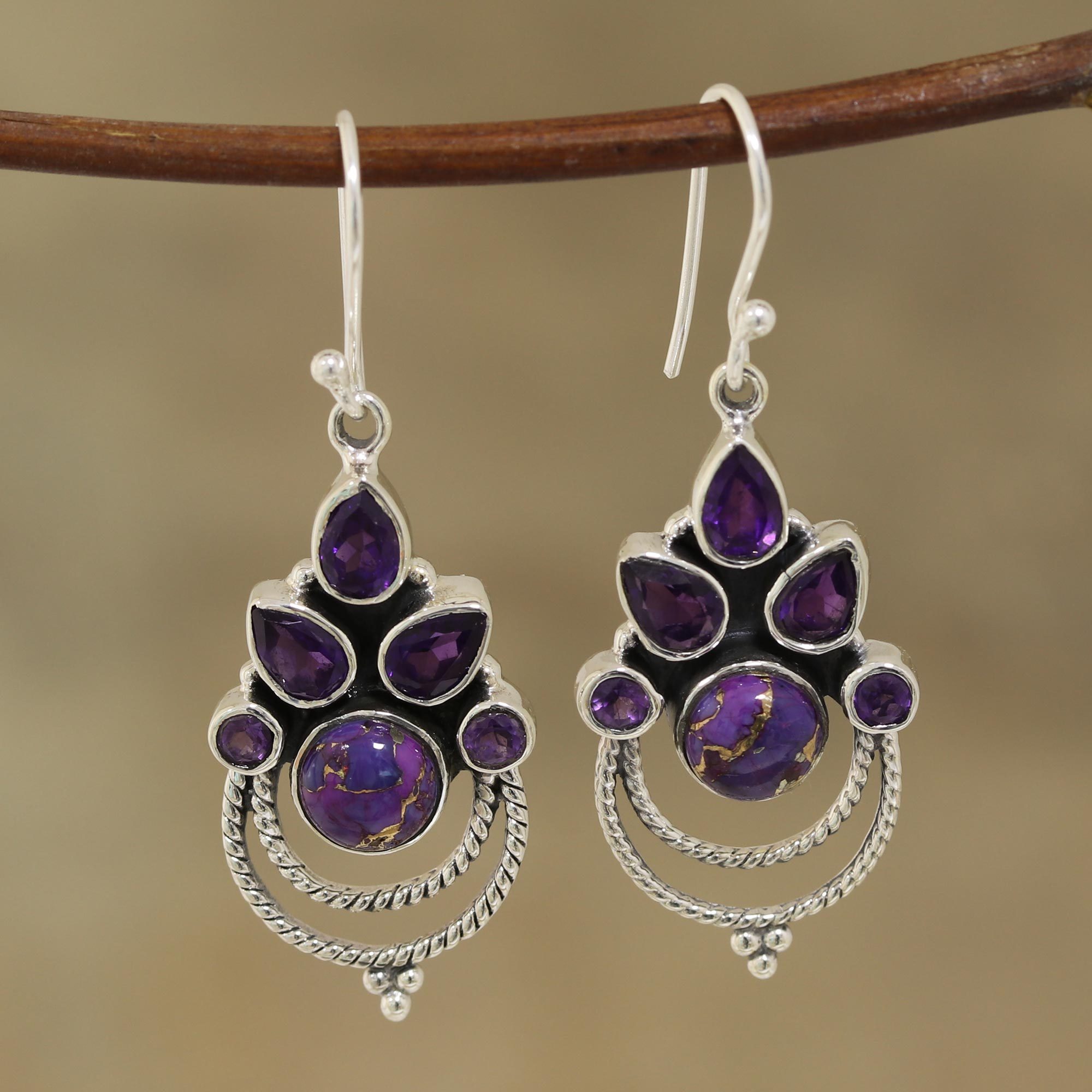 Amethyst and Purple Composite Turquoise Dangle Earrings, 'Radiant Harmony'