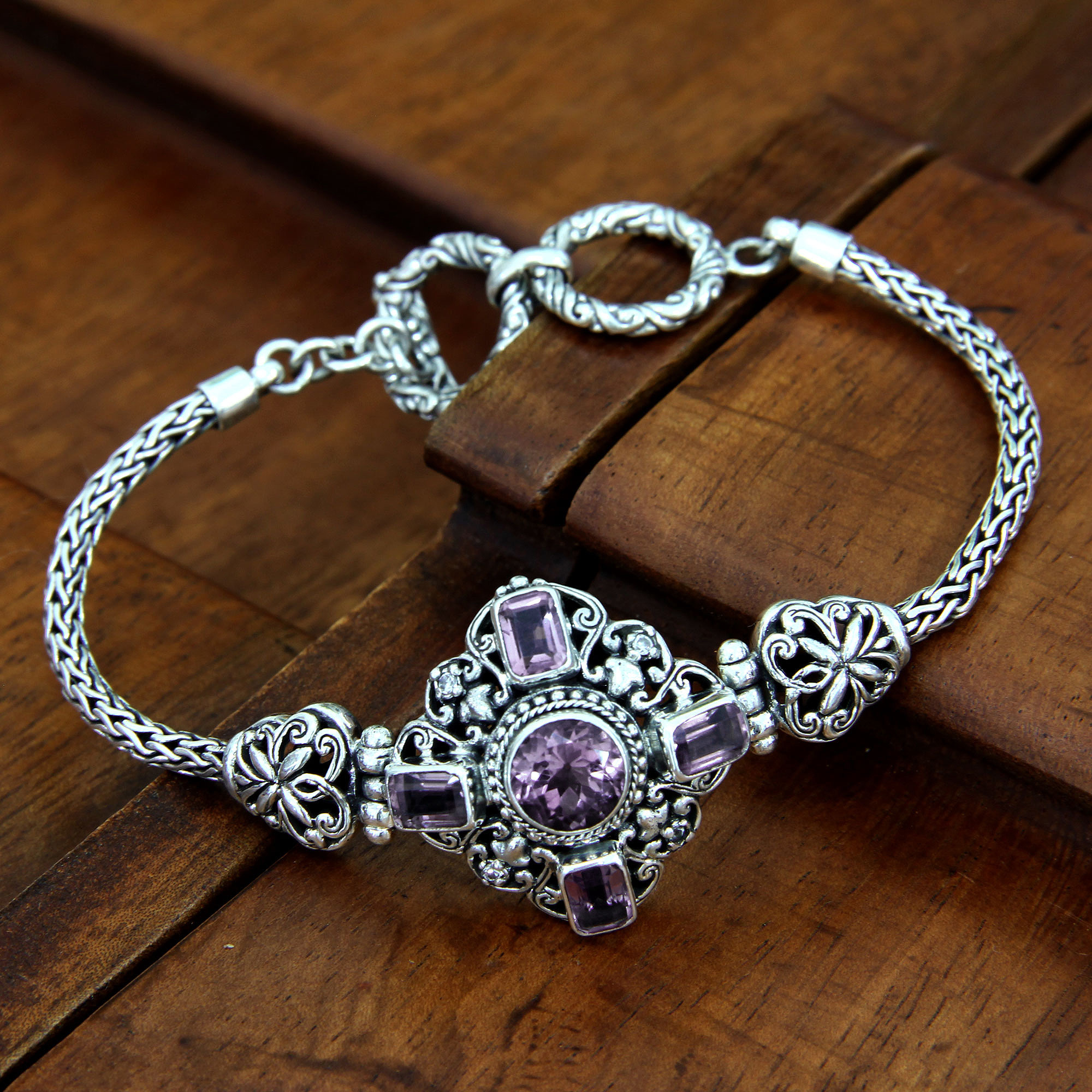Amethyst and Sterling Silver Bracelet, 'Royal Blossom'