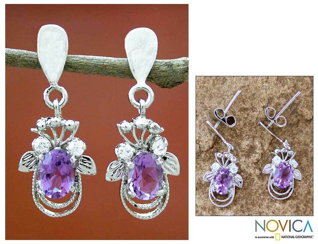 Sweet, elegant butterflies flutter with sterling wings in a mesmerizing design from Hema. Faceted amethyst creates an aura of mystical charm as they glisten alongside cubic zirconia.