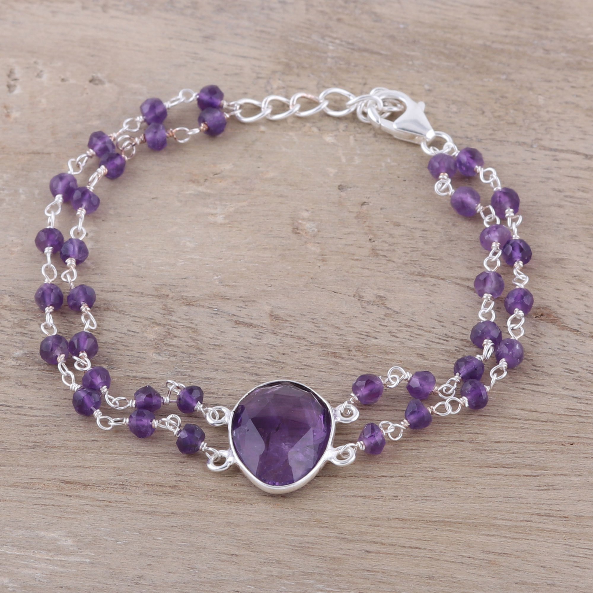 Amethyst Link Pendant Bracelet from India, 'Fascinating Egg'