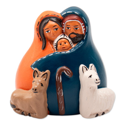 Andean-Themed Hand-Painted Ceramic Nativity Scene from Peru, 'Andean Sacred Family'