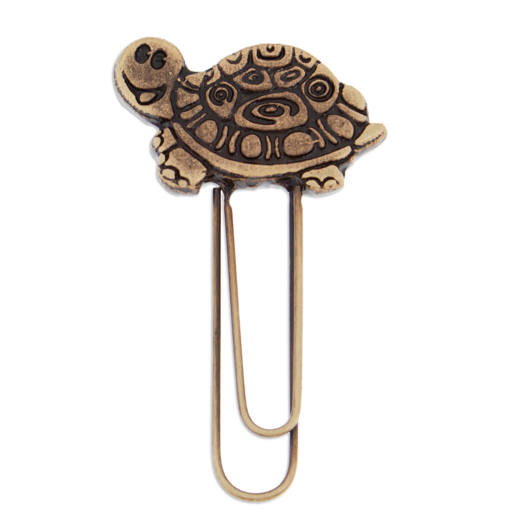 This adorable and wise turtle will be a regal companion on each literary journey! Mexico's Mony Lemus works with zamac metal to create this convenient clip bookmark, decorated with the smile of this petite reptile in a golden antiqued finish.