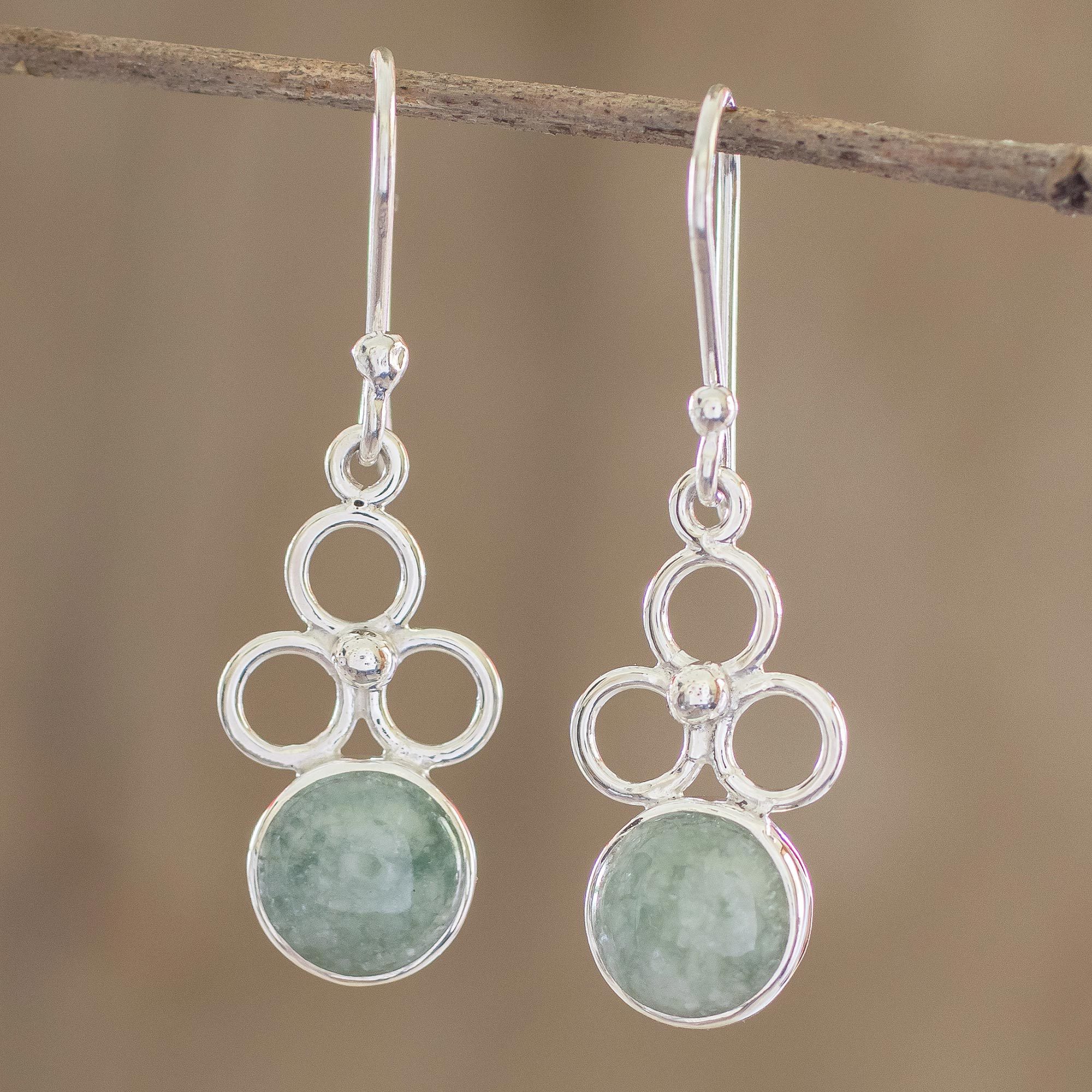 Apple Green Jade Dangle Earrings from Guatemala, 'Trinity of Hope'