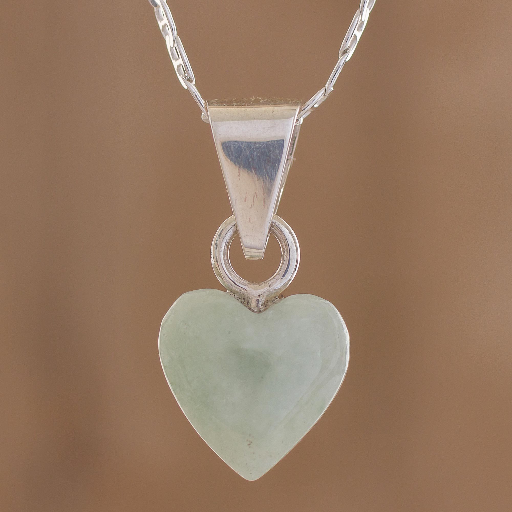 Apple Green Jade Heart Necklace from Guatemala, 'Apple Green Symbol of Love'