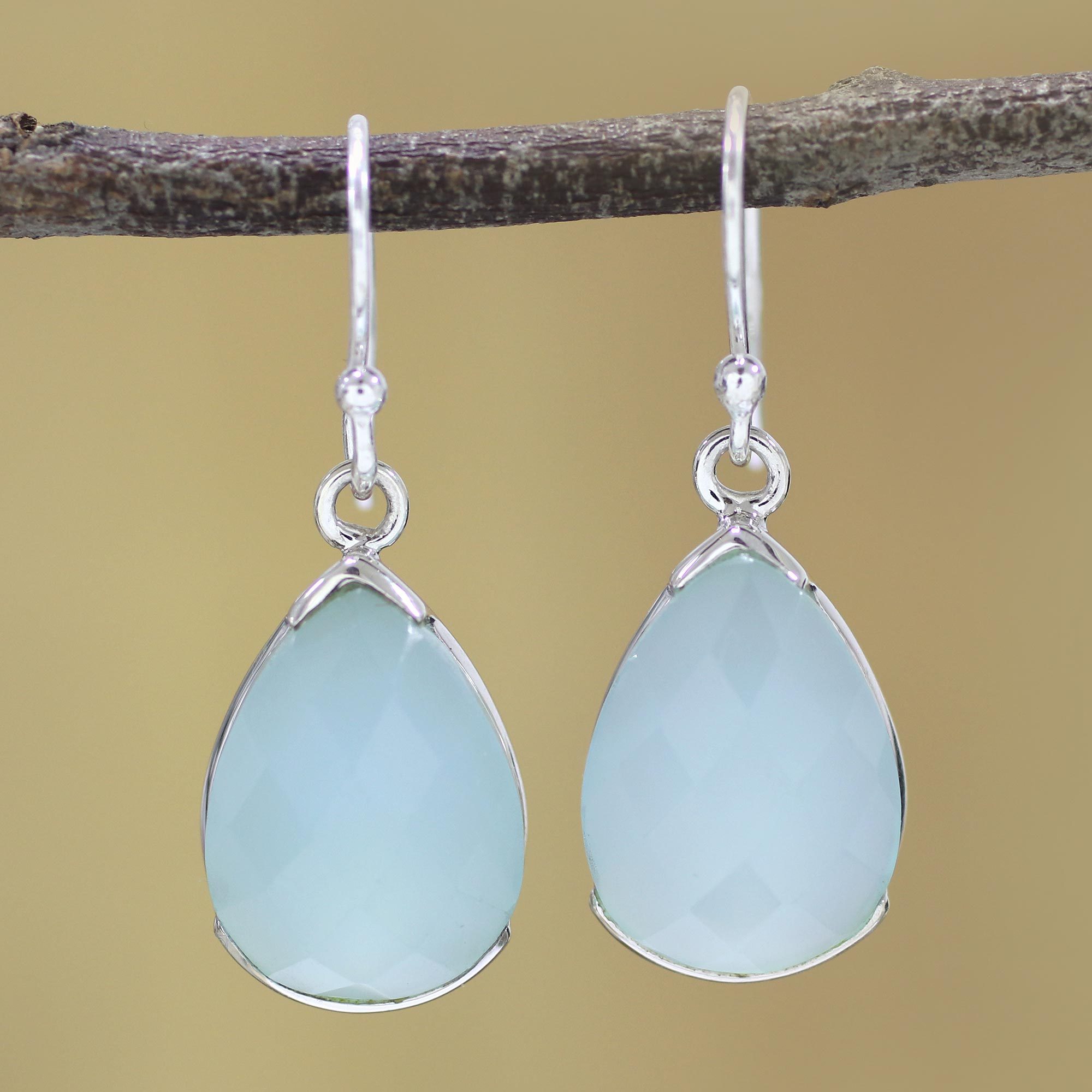 Aqua Chalcedony and Sterling Silver Dangle Earrings, 'Aqua Drops'