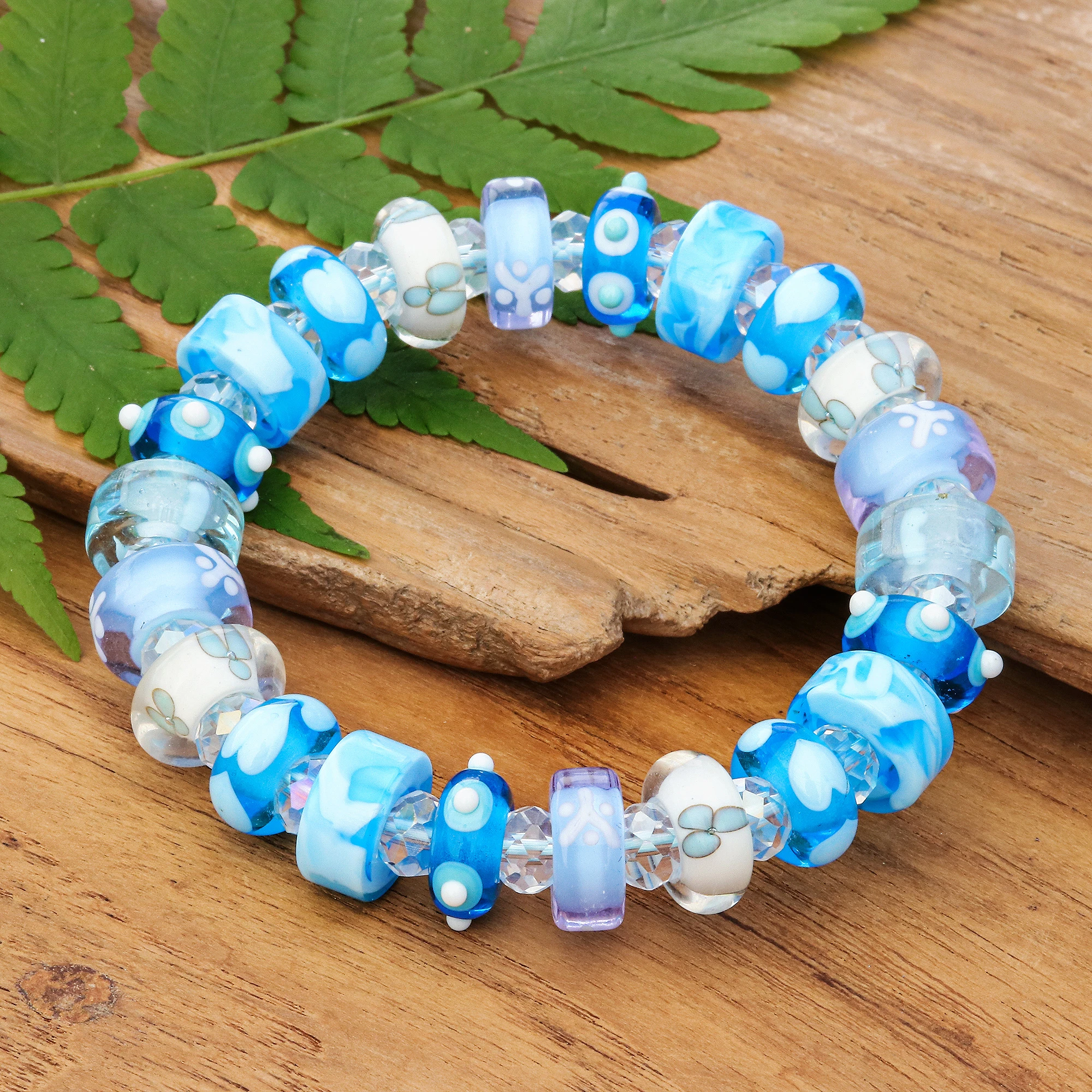 Art Glass Crystal Beaded Stretch Bracelet in Light Blue Hue, 'Celestial Spell'