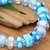 Give your look a creative edge with this awe-inspiring stretch bracelet featuring vivid light blue and white glass beads made using traditional handblown techniques. The colorful patterns and smooth textures feel playful yet sophisticated. Thai artisan Alexx Cheng's artistry shines through in every unique detail of this chic bracelet, complemented by faceted crystal beads.