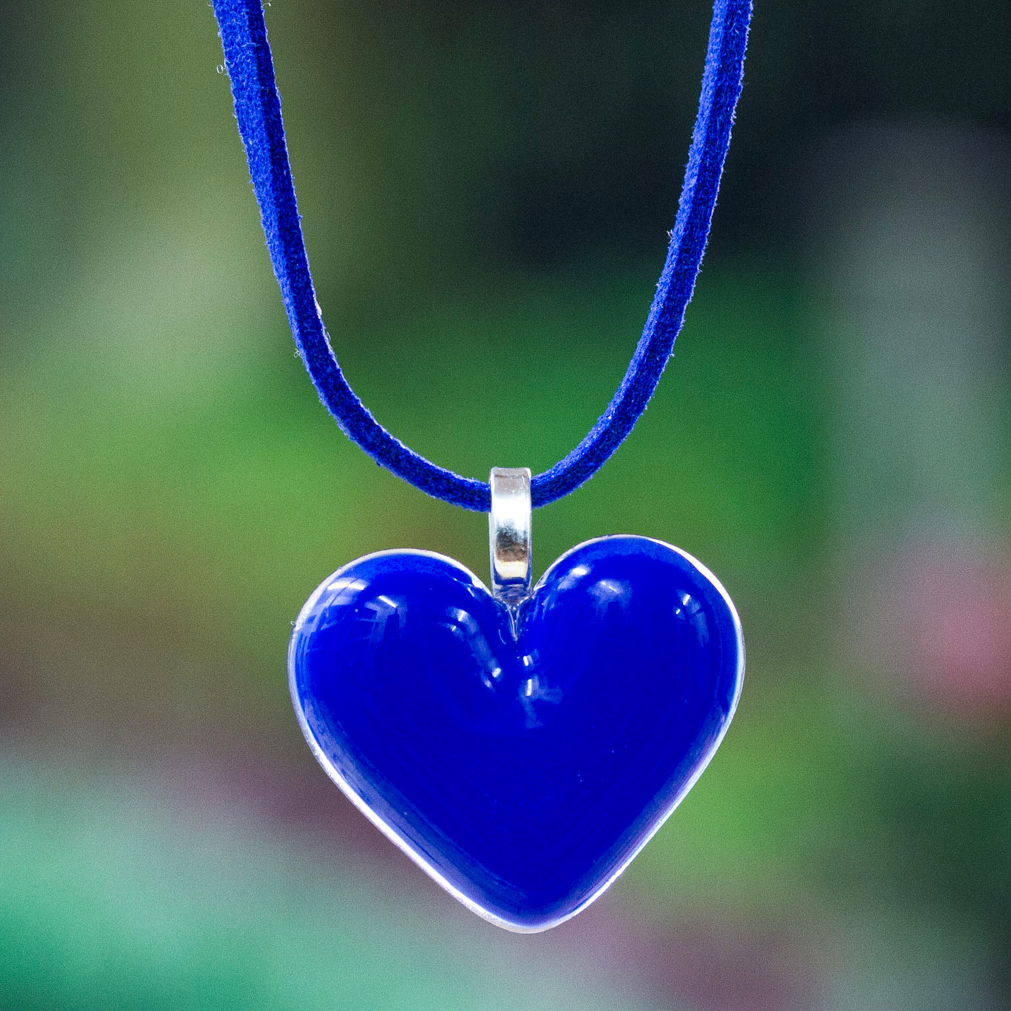 Art Glass Heart-Shaped Pendant Necklace in Lapis Blue, 'My Lapis Love'