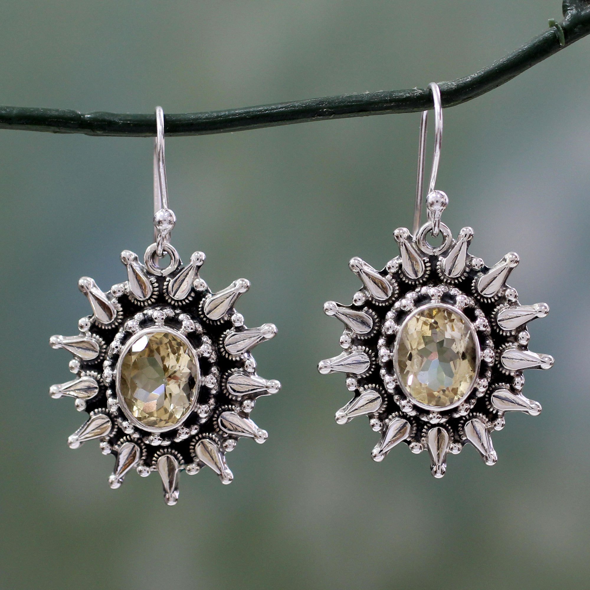Dazzling sunbursts showcase faceted citrine gems that total 6 opulent carats. From Neeru Goel in India, these earrings are handcrafted of sterling silver.