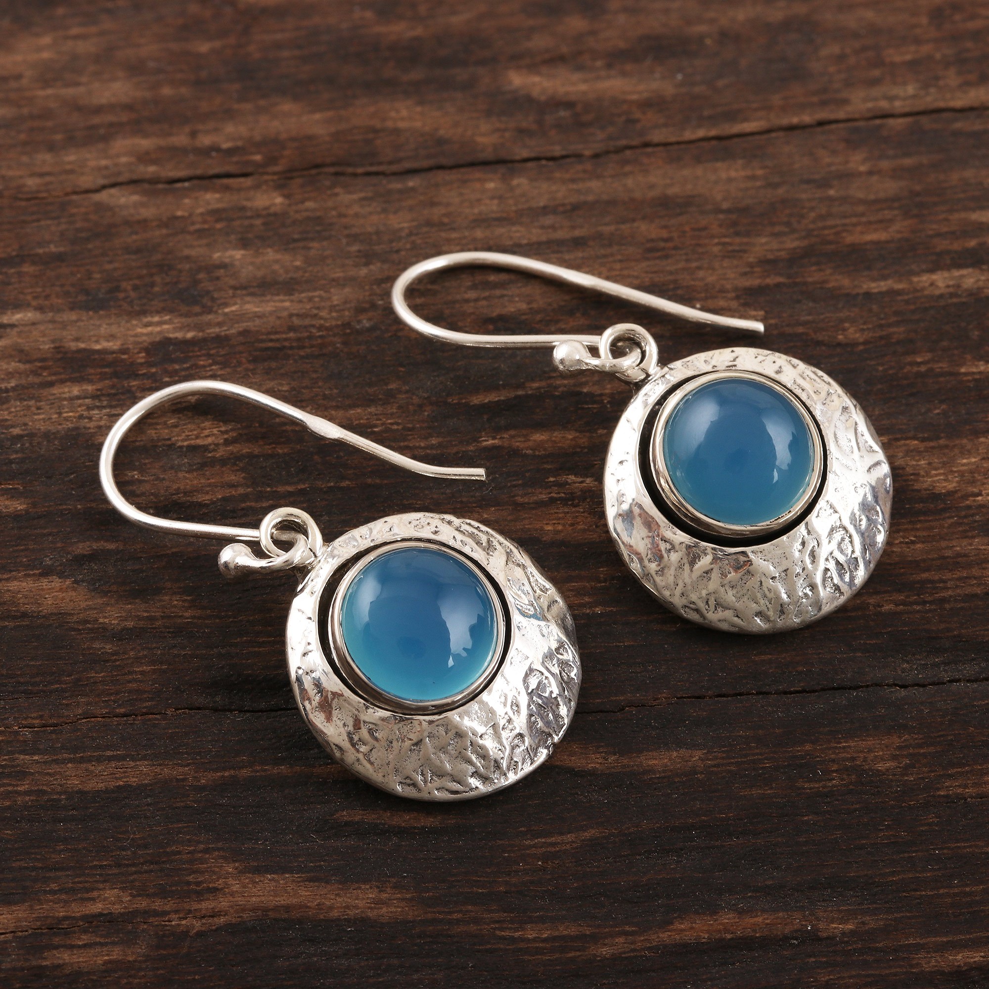 Artisan Crafted Blue Chalcedony Dangle Earrings, 'Marvelous Moon'
