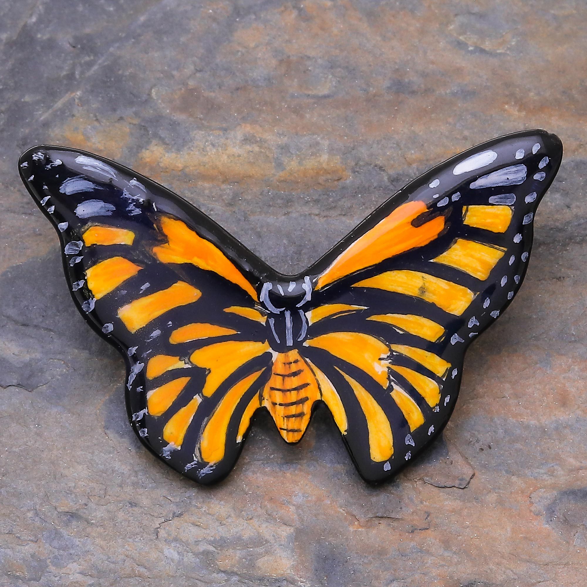 Artisan Crafted Ceramic Butterfly Brooch Pin, 'Evening Flight'