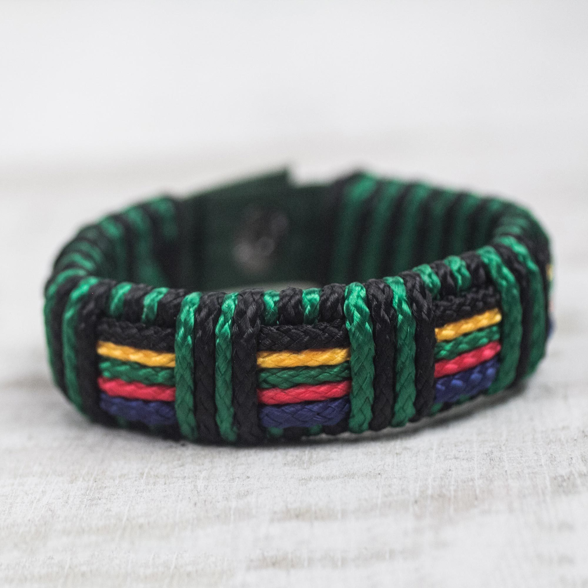 Artisan Crafted Colorful Men's Wristband Bracelet, 'Kente Spirit'