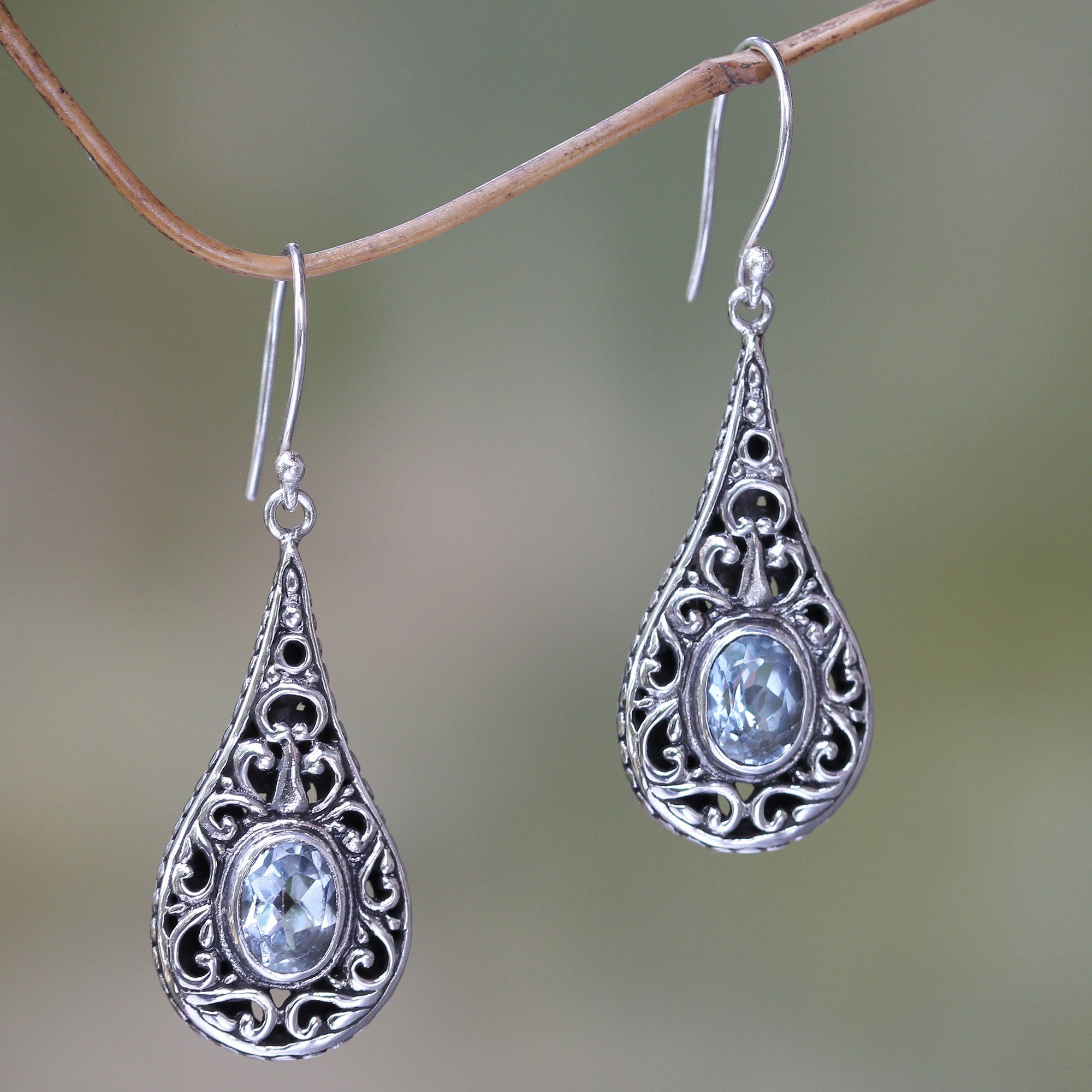 Blue topaz is scintillating in sterling silver earrings from Komang Wijayana. Expertly crafted by hand with 3 gemstone carats, the earrings are brimming with the graceful elegance of Balinese artistry.