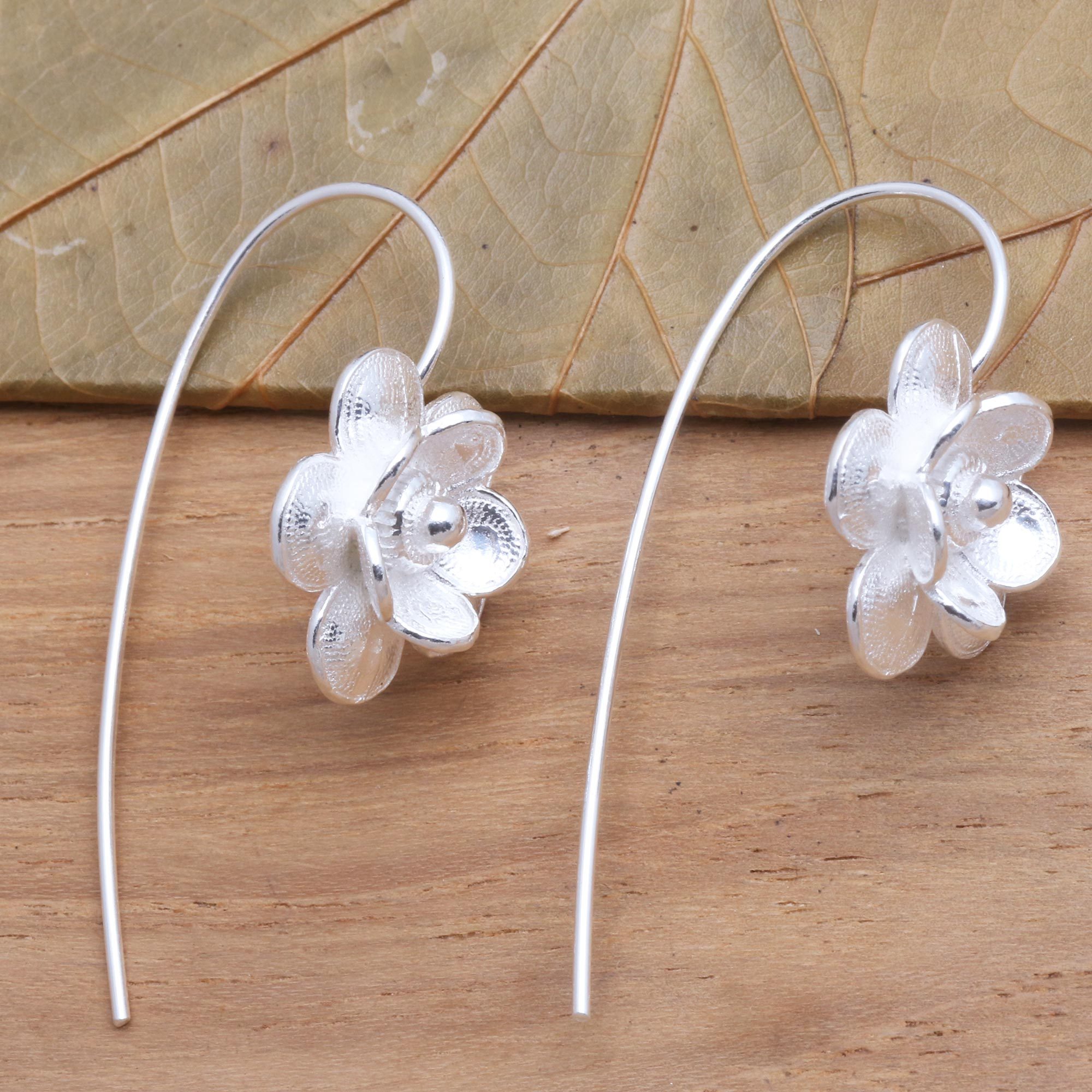 Artisan Crafted Flower Earrings in Sterling Silver, 'Delicate Bloom'