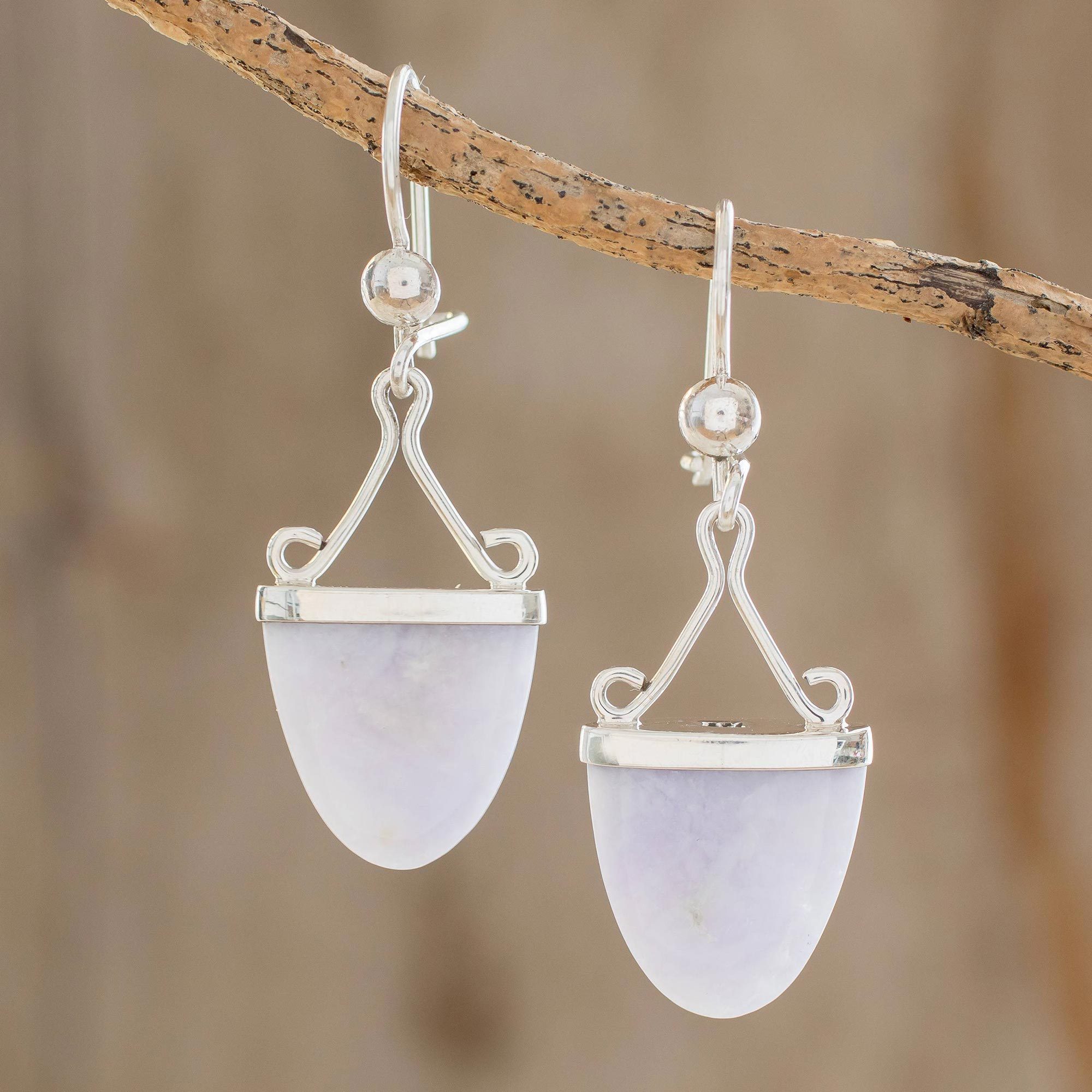 Artisan Crafted Lilac Jade and Sterling Silver Earrings, 'Power of Life'