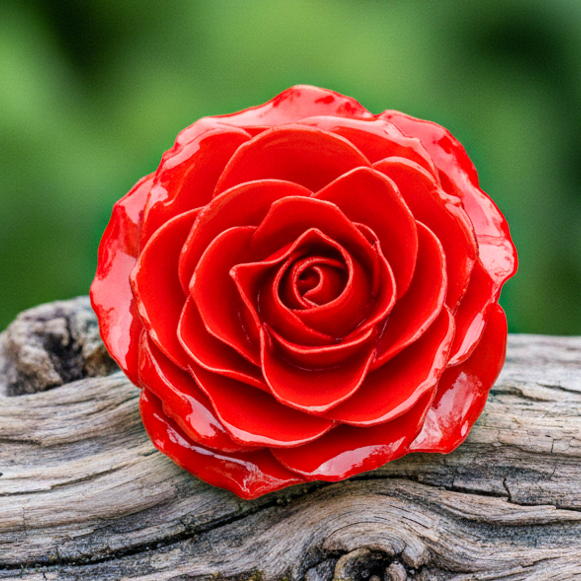 Artisan Crafted Natural Rose Brooch in Red from Thailand, 'Rosy Mood in Red'