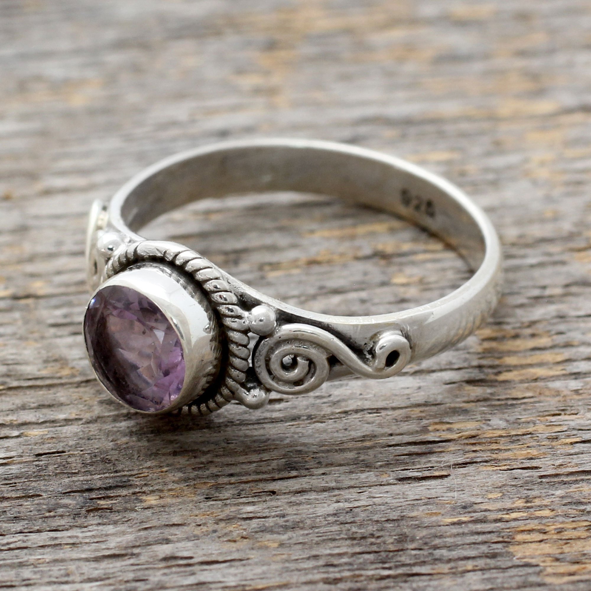 Artisan Crafted Silver and Amethyst Ring from India, 'Assam Orchid'