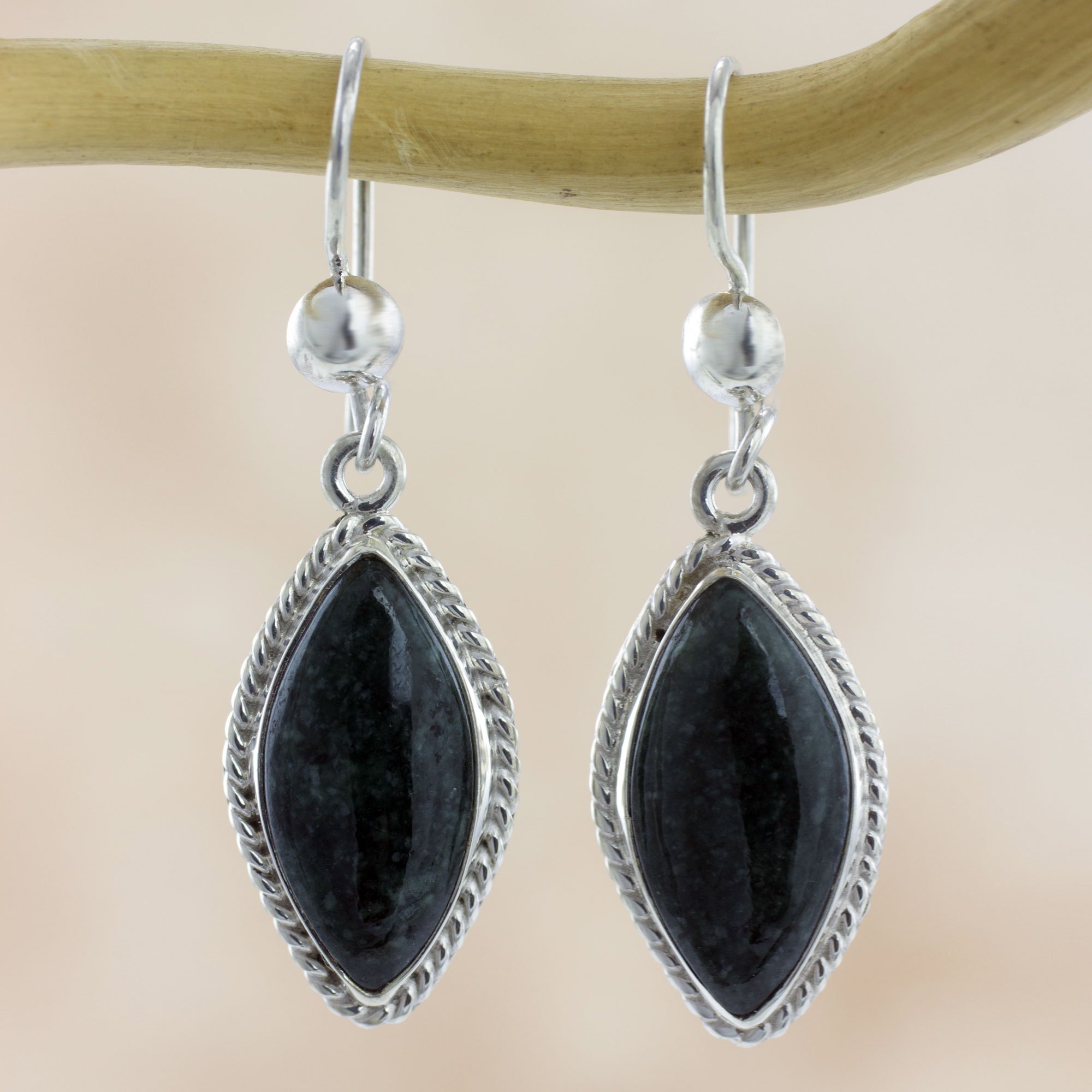 Artisan Crafted Silver and Dark Jade Earrings, 'Dark Gaze'