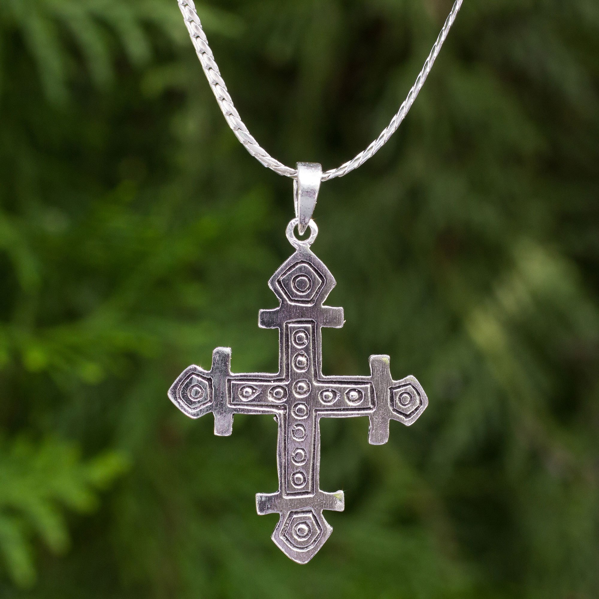 Artisan Crafted Silver Cross Pendant on Curb Link Chain, 'The Cross'