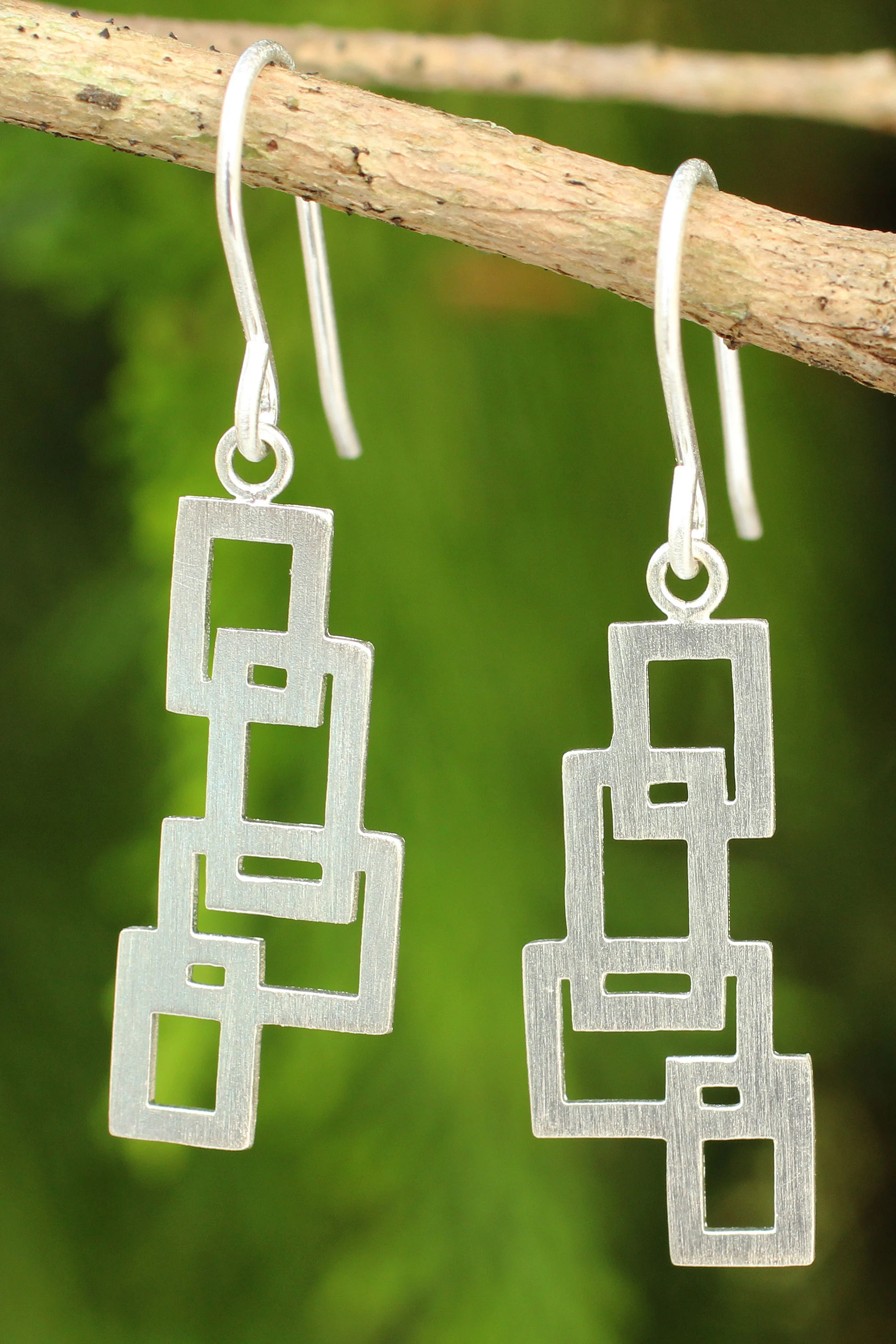 Artisan Crafted Silver Earrings, 'Open Windows'