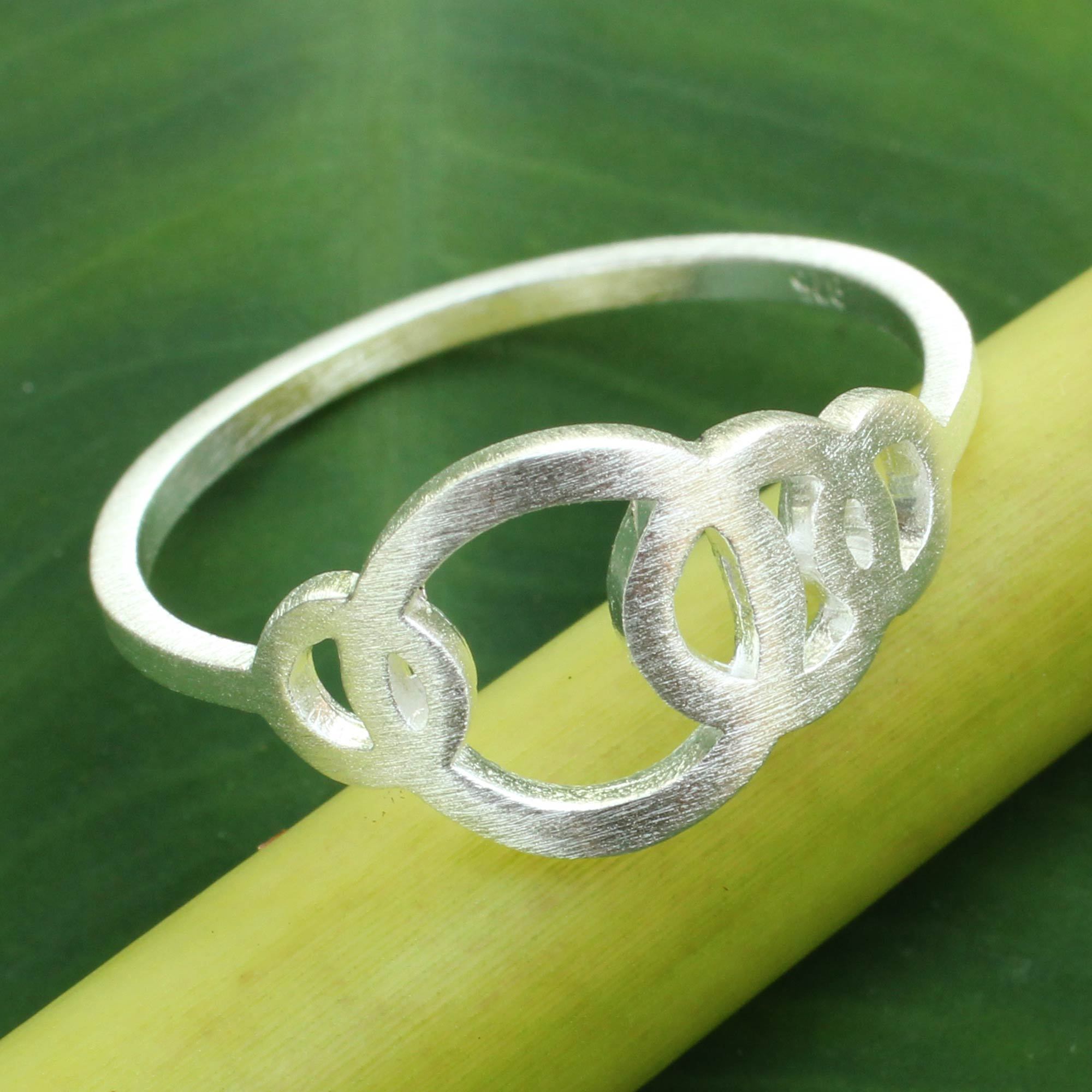 Artisan Crafted Silver Geometric Ring, 'Circle Dance'