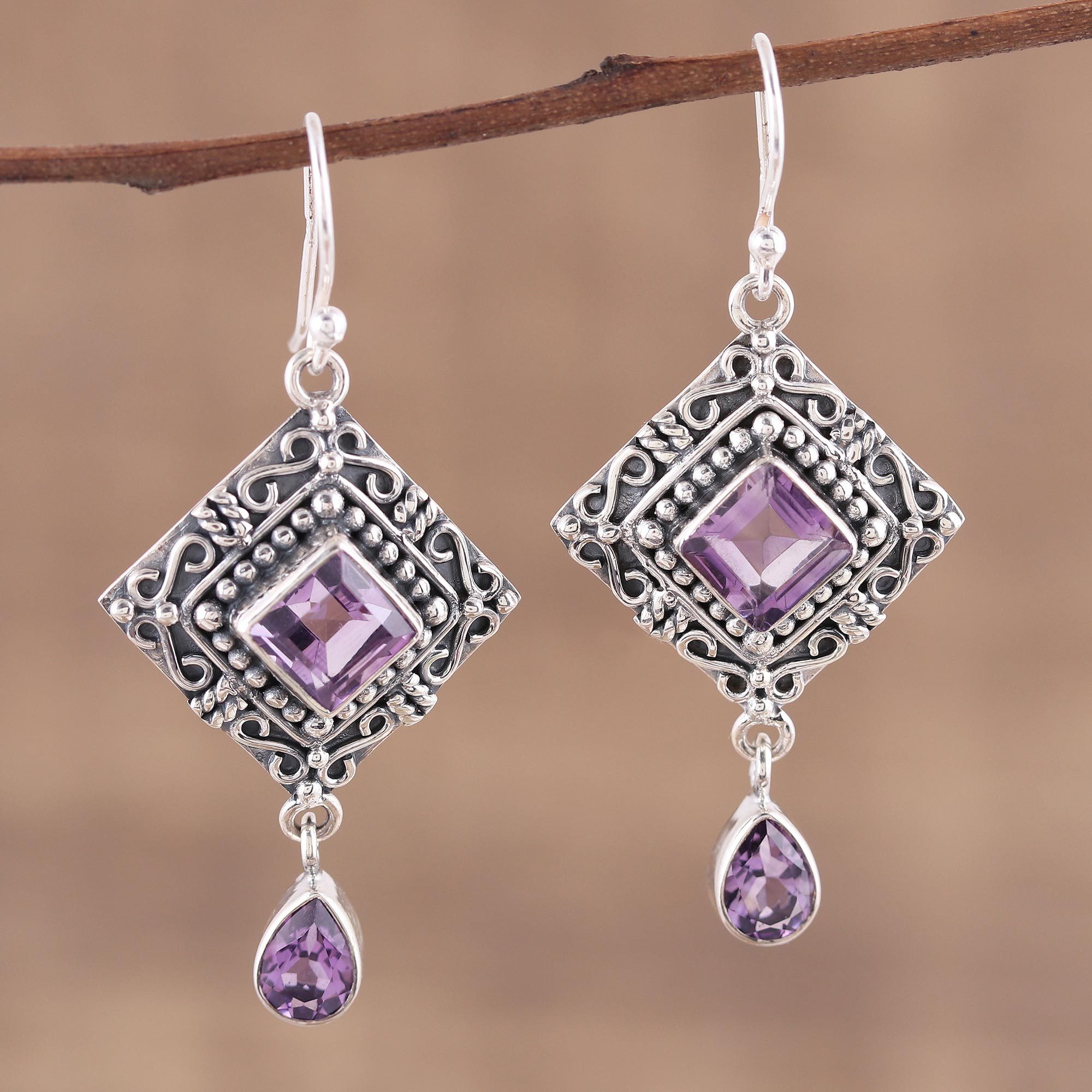 Artisan Crafted Sterling Silver and Amethyst Earrings, 'Castle Walk'