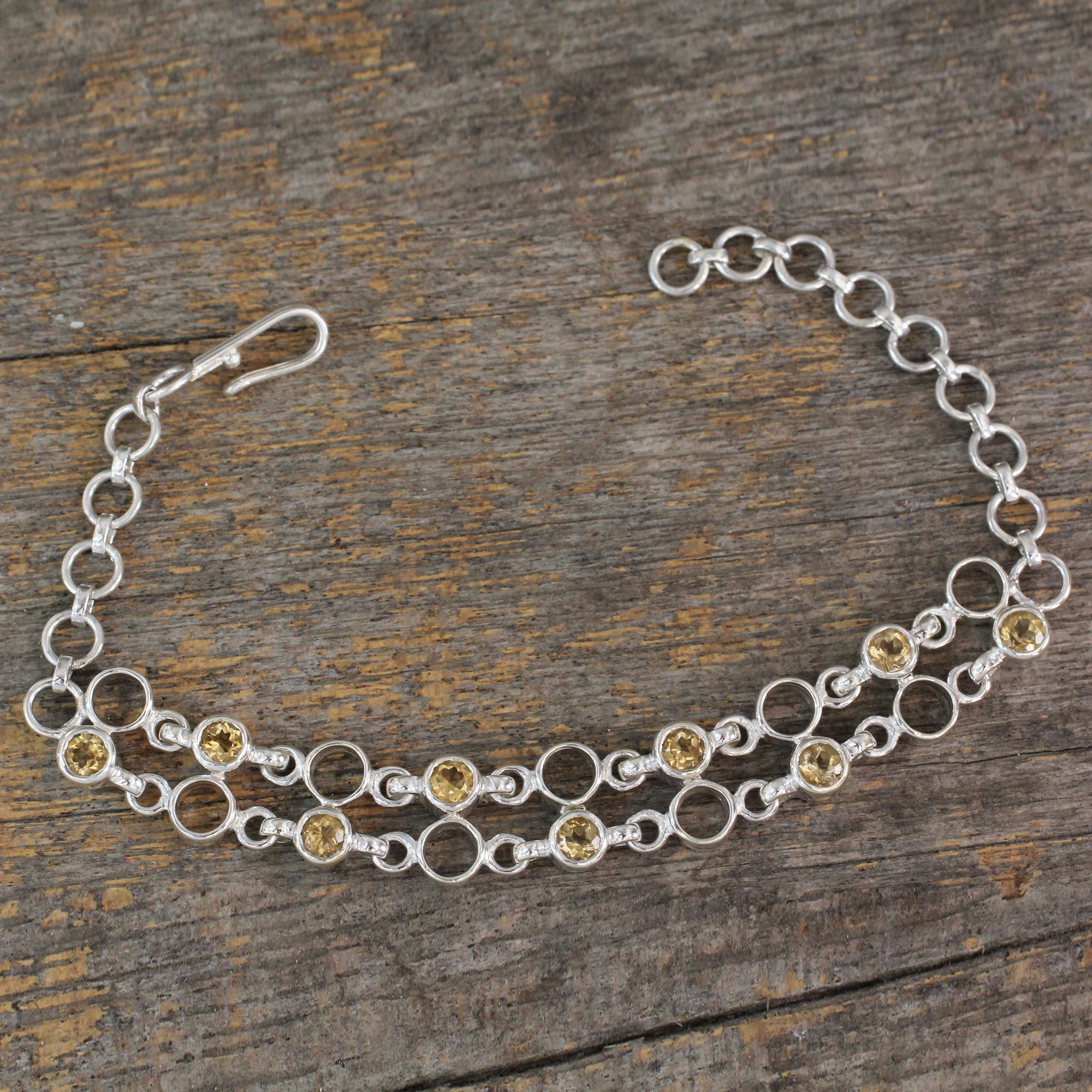 This luminous bracelet of linked circles is accented by bright drops of sunlight. Shubhra Singh of India designs this adjustable piece using sterling silver and 3 carats of citrine.