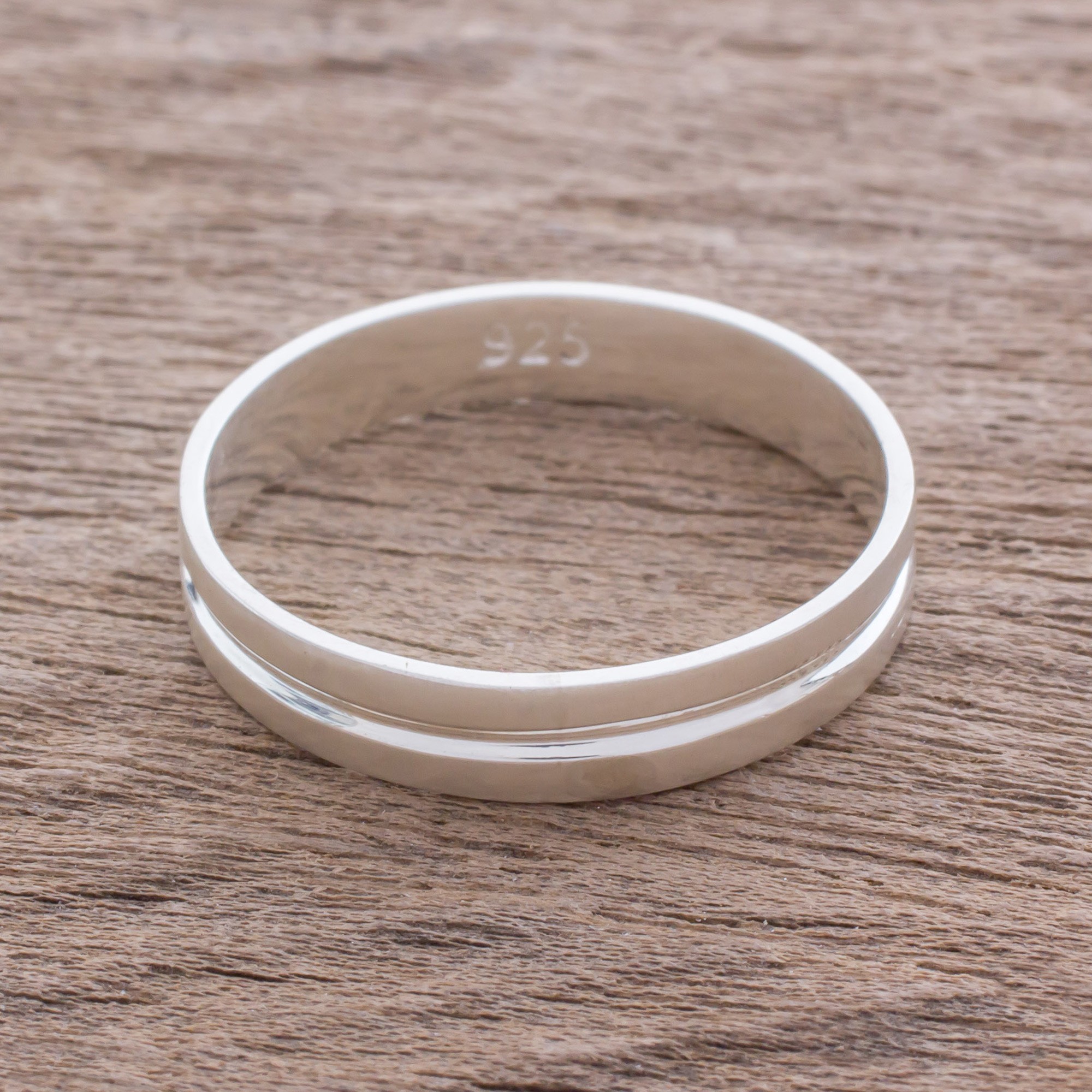 Possessing an eternal elegance, this simple and beautiful ring from Guatemala circles the finger with a band of sterling silver. Estuardo Jimenez designs the ring, elaborating the brushed-satin band with a gleaming high-polish center channel that circles the finger with grace.
