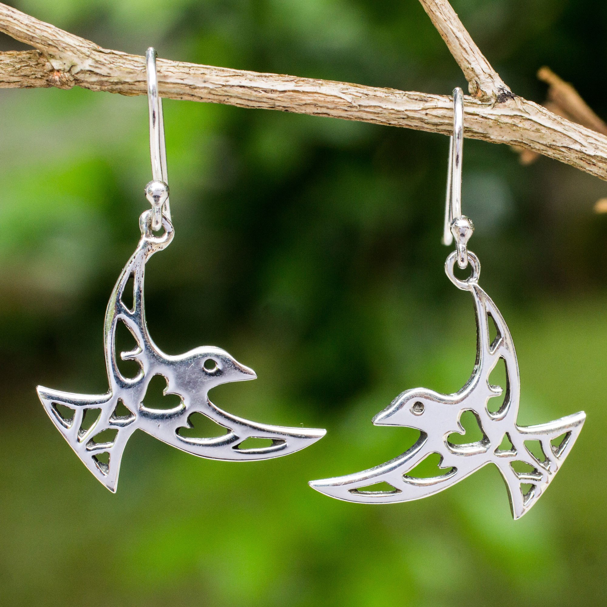 Artisan Crafted Sterling Silver Bird Hook Earrings, 'Fly Me Away'