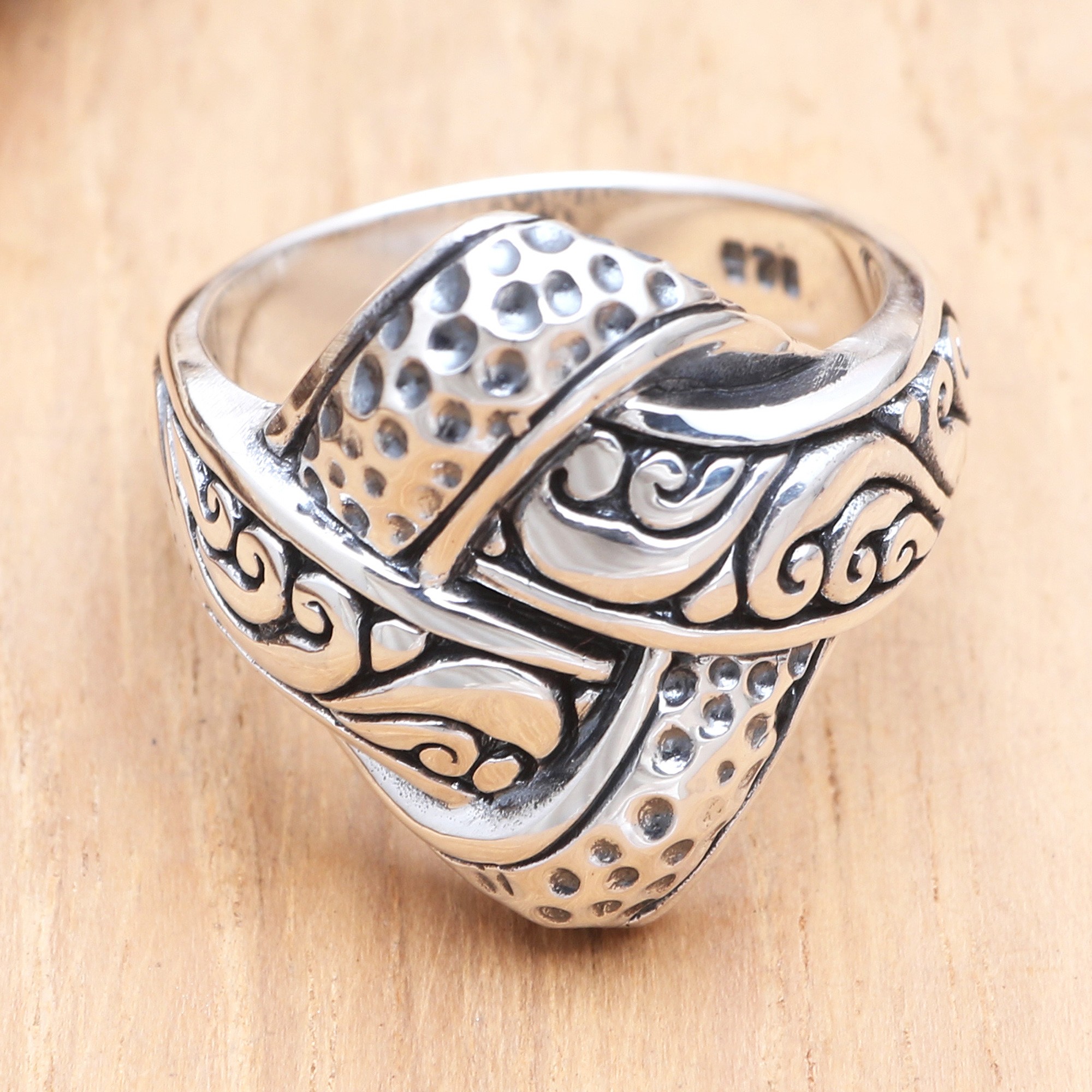 Artisan Crafted Sterling Silver Cocktail Ring, 'Woven Illusion'
