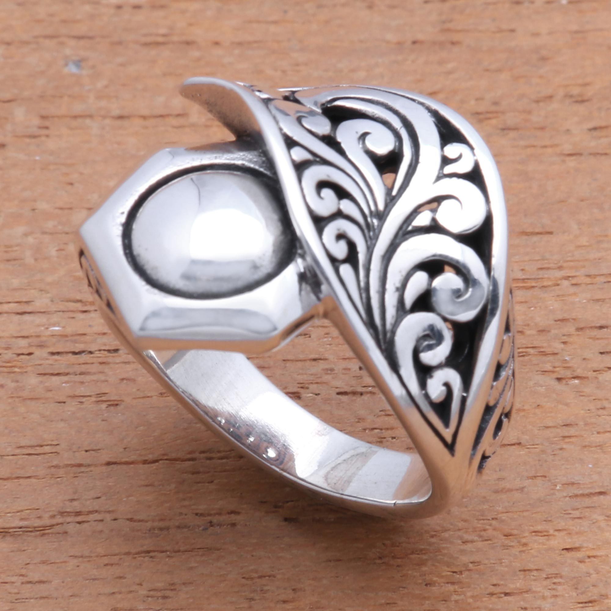 Artisan Crafted Sterling Silver Cocktail Ring from Bali, 'Canopy Cover'