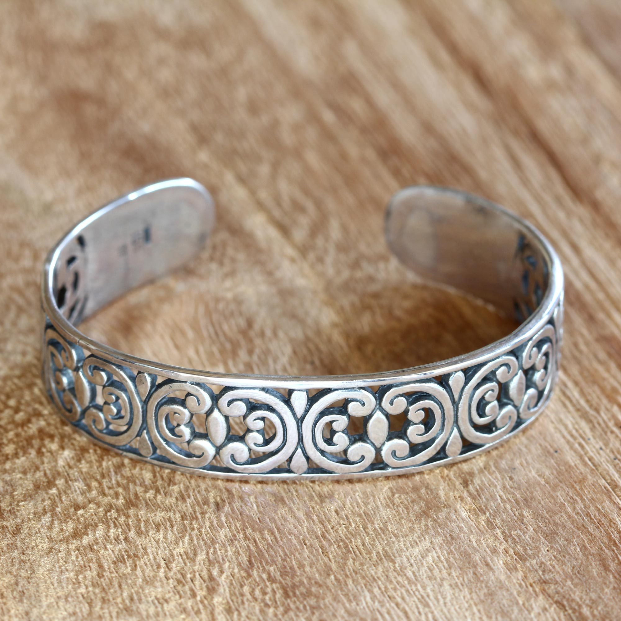Artisan Crafted Sterling Silver Cuff Bracelet, 'Indonesian Lace'