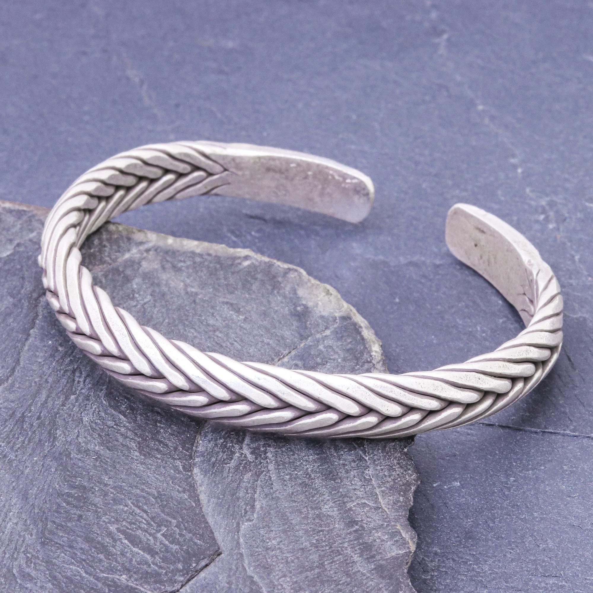 Artisan Crafted Sterling Silver Cuff Bracelet, 'Silver Plaits'