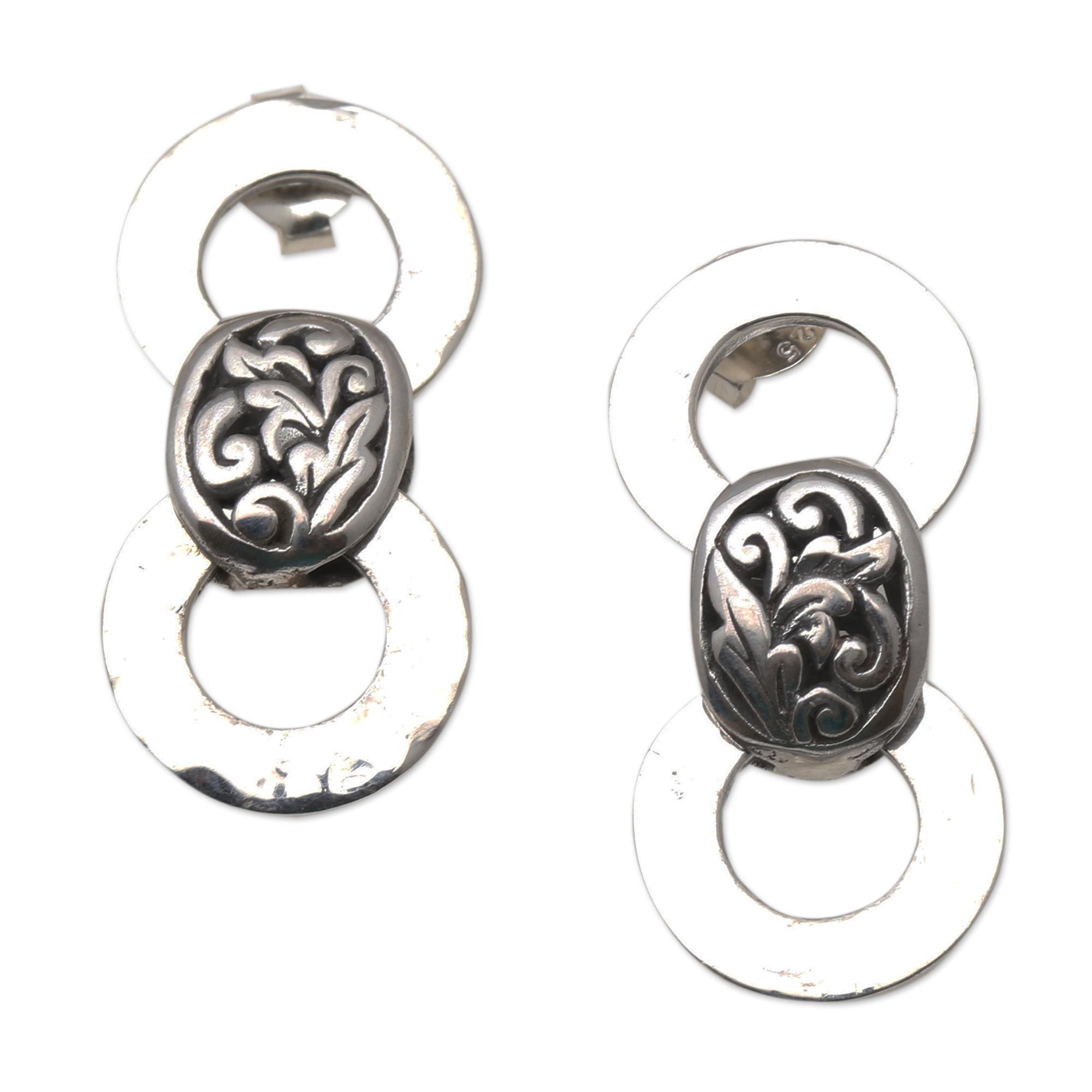 Designed for everyday wear, Rosalia Tarigan's lovely earrings are just what you need from Monday to Friday. Indonesian artisans in Rosalia's East Java workshop hand craft the earrings from two rings of polished sterling silver, joined with graceful Balinese designs.