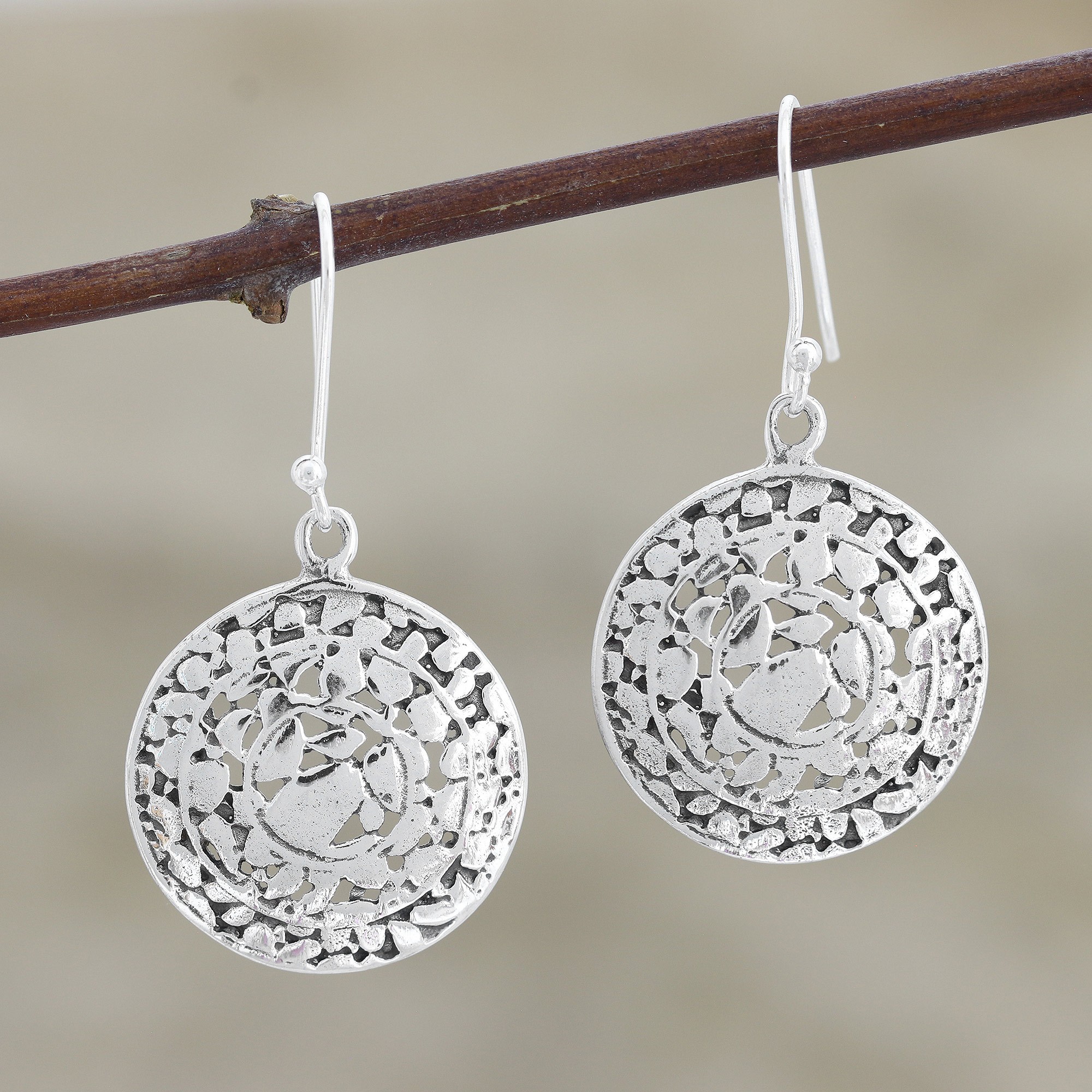 Resembling ancient shields that have survived centuries of decay, these intriguing earrings are designed by Ajay Patil in India. The round dangle earrings are crafted of sterling silver.
