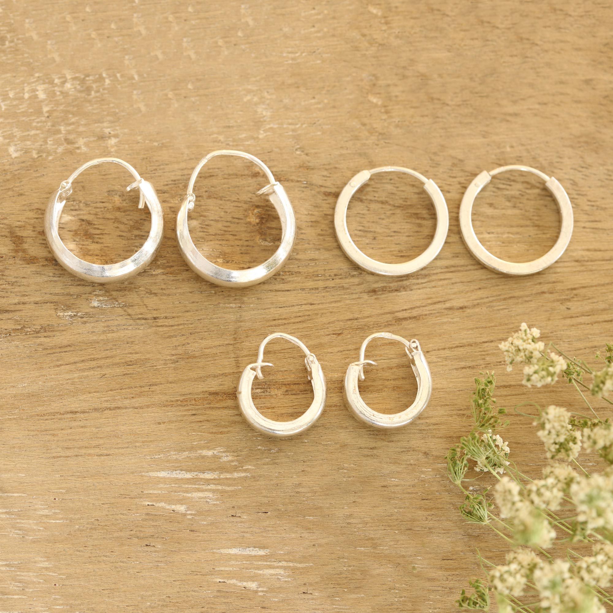 Artisan Crafted Sterling Silver Hoop Earrings (Set of 3), 'Lustrous Loops'