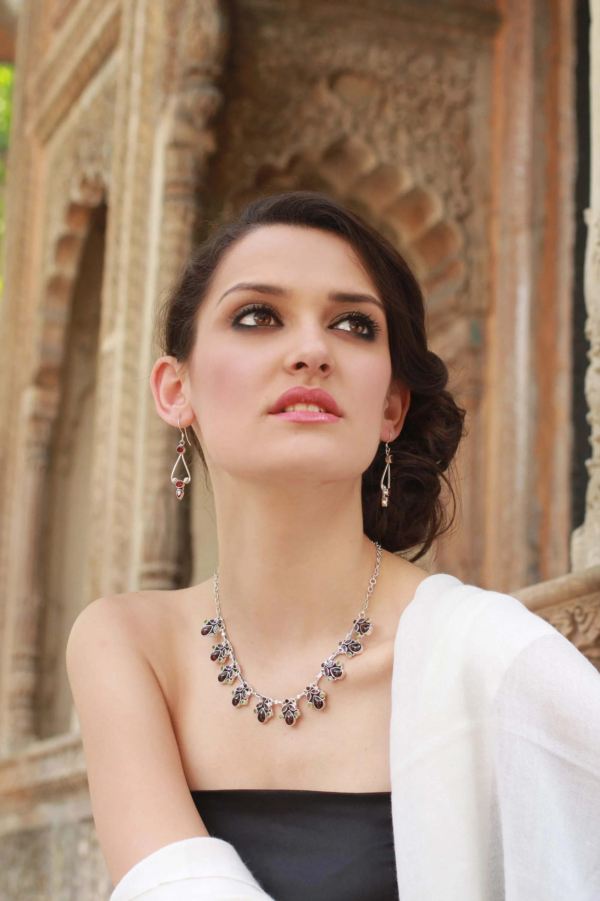 Descending from a sterling lineage, gemstones of all colors share a common heritage. Neeru Goel designs a stunning necklace with garnet, amethyst and cool peridot that total 16 carats.