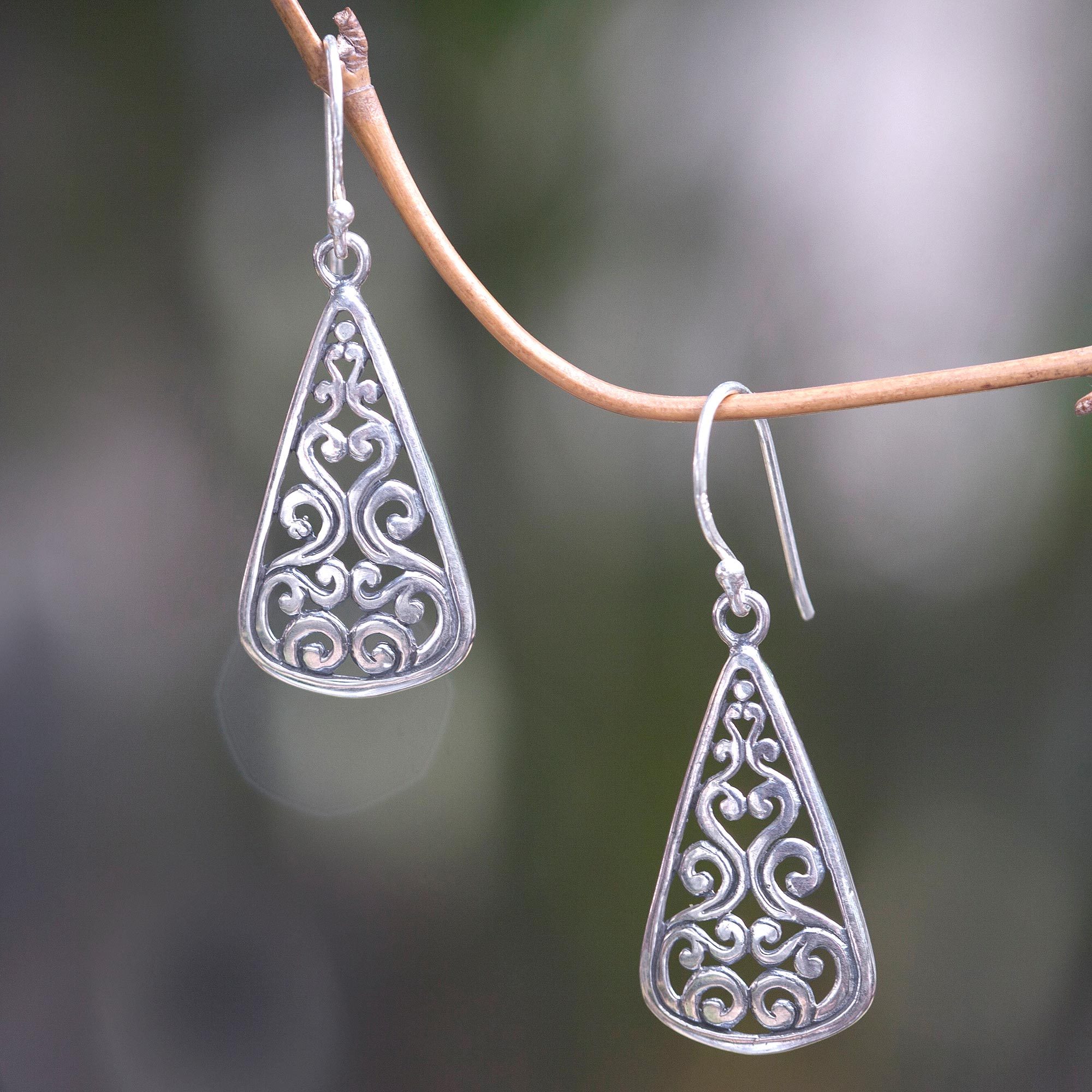 Sinuous ribbons of sterling silver evoke floral ferns in a tropical haven. Handcrafted by Bali's Yus Swarmana, these dangle earrings are beautifully feminine.