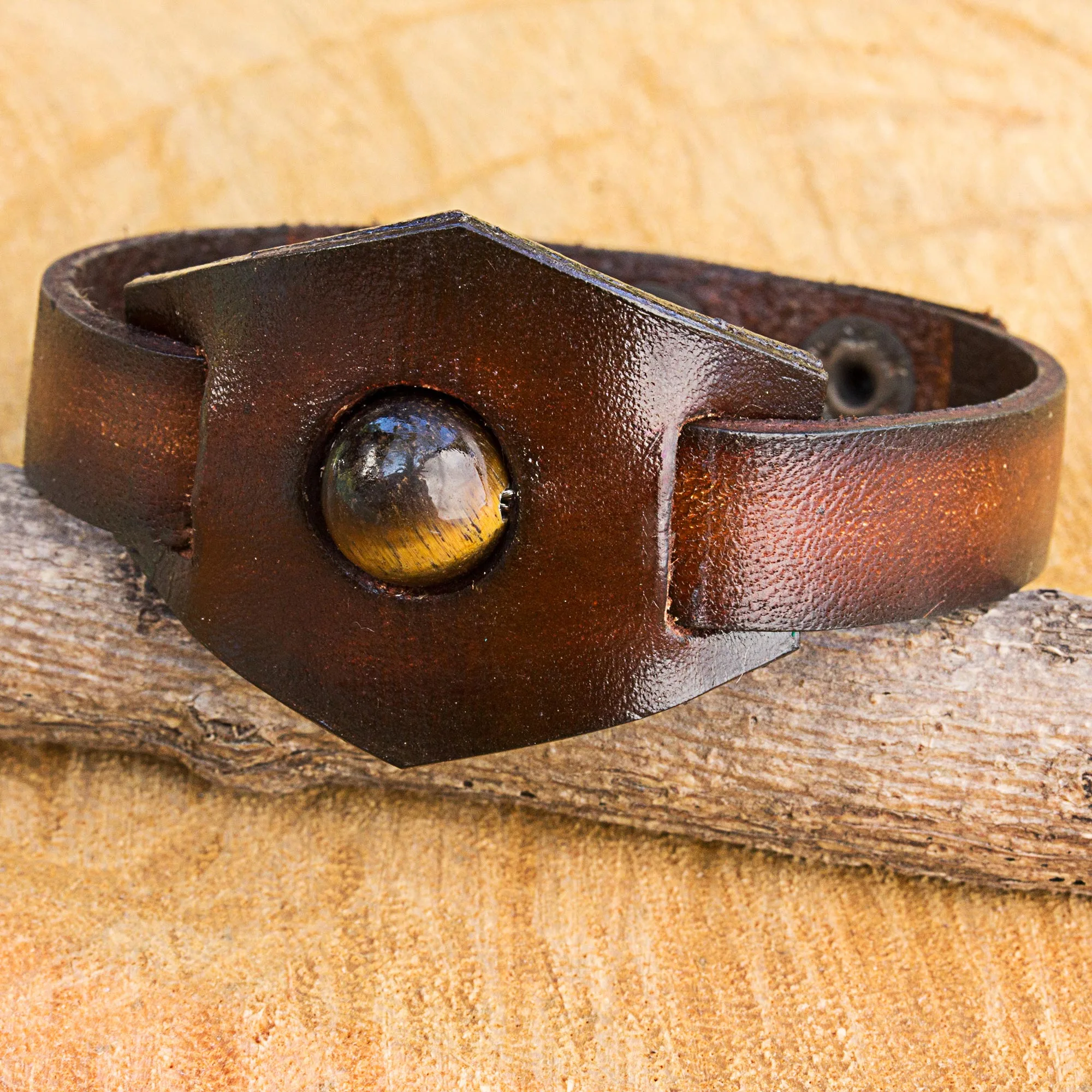 Tiger's eye, cow leather, brass