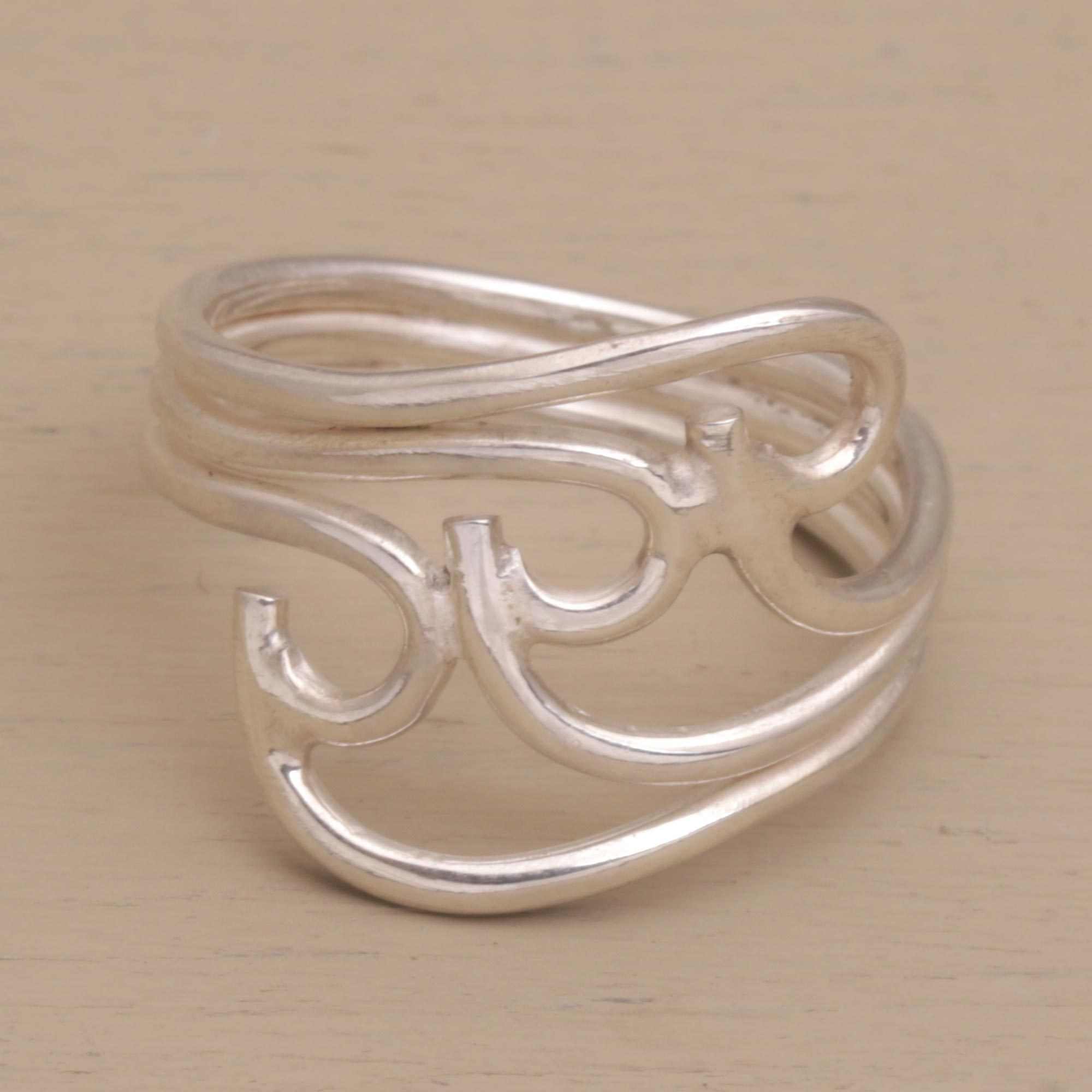 Artisan Crafted Wave-Like Sterling Silver Cocktail Ring, 'Washed Ashore'