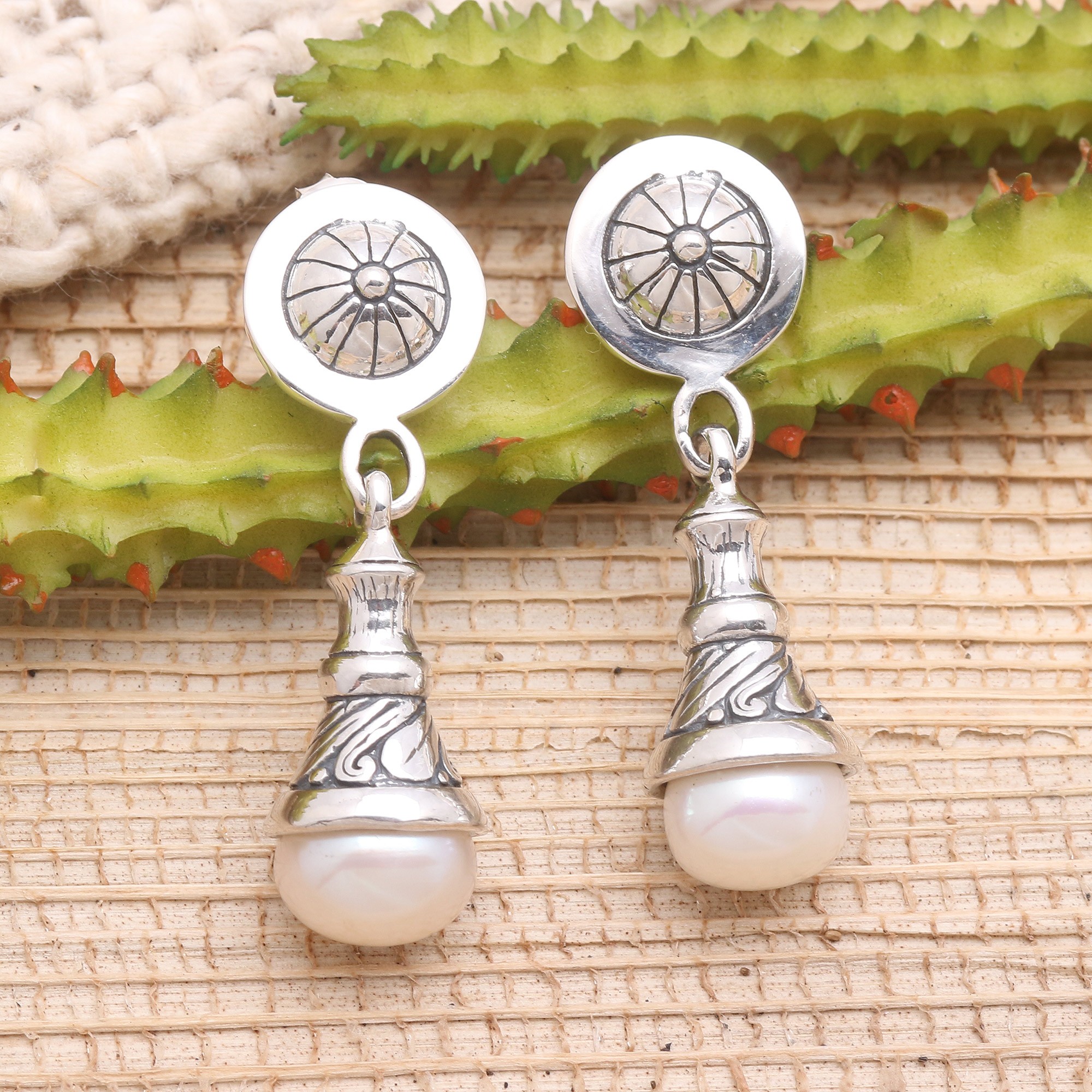 Artisan Designed Cultured Pearl Earrings, 'Bali Bagatelle'