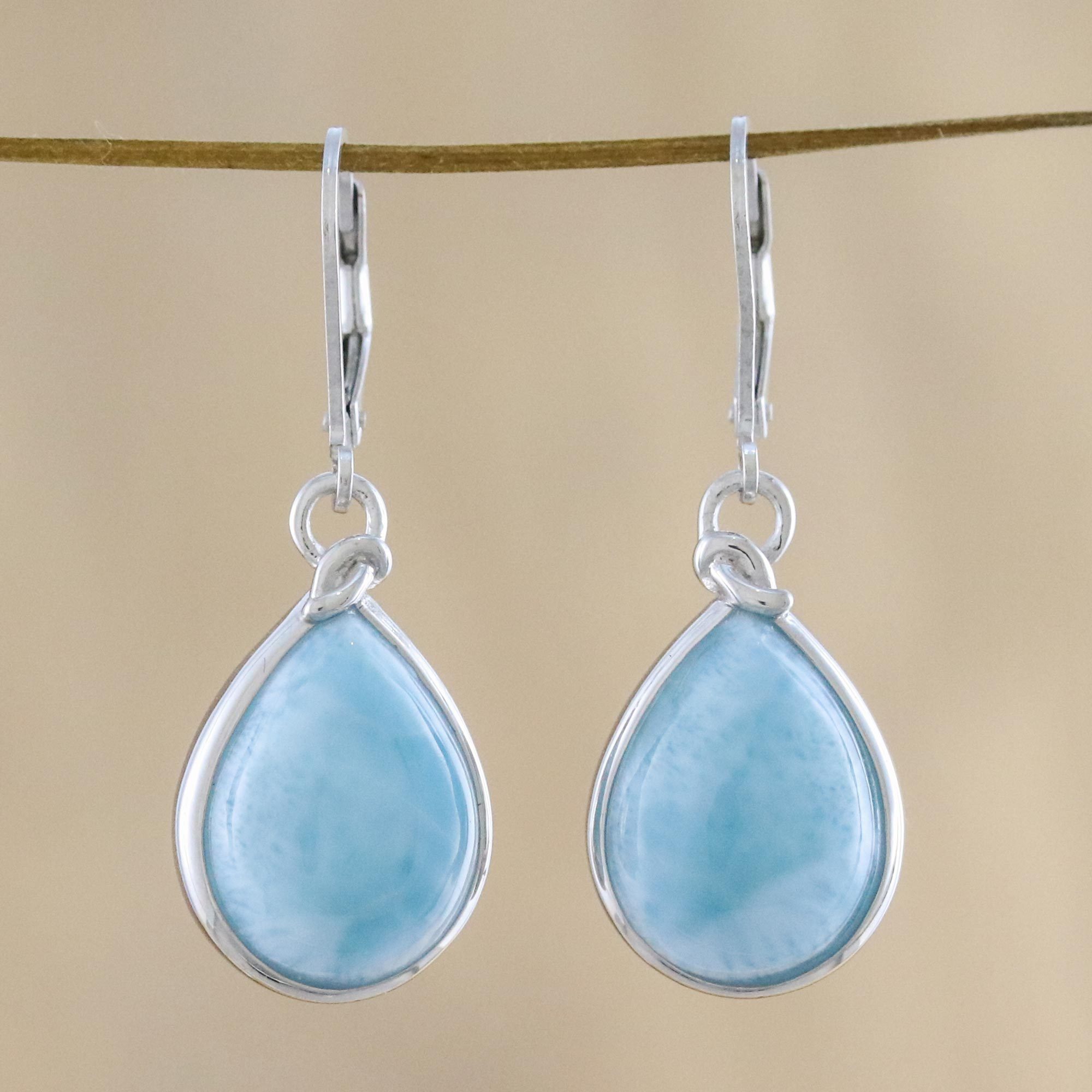 Artisan Designed Larimar and Sterling Dangle Earrings, 'Gossamer Sky'