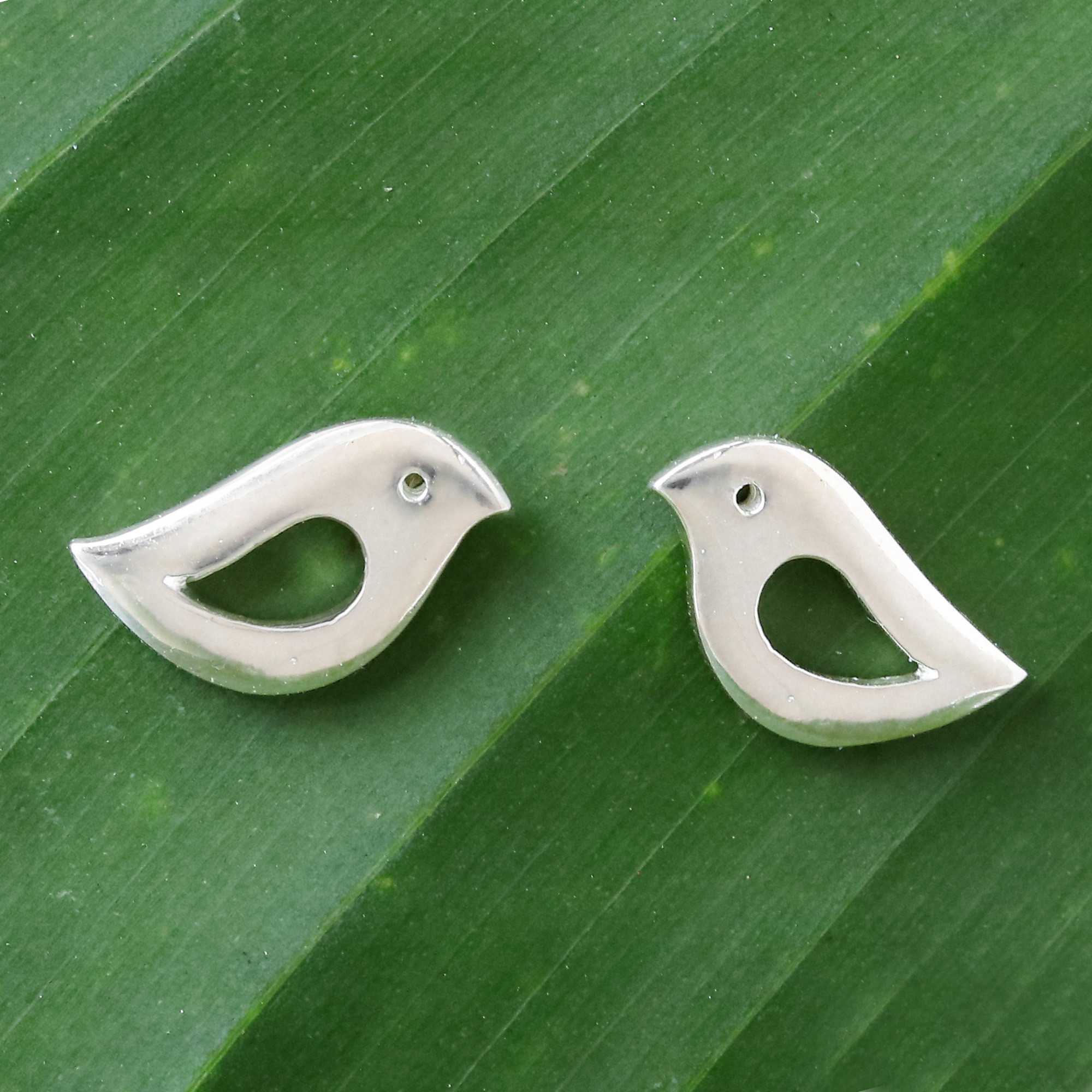 Thai artisan Lalana designs and creates this beautiful pair of stud style earrings in a high polish 925 sterling silver. Two cute, tiny birds are represented in an elegant, minimalist design.