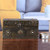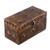 An antiqued finish takes your jewelry pieces to an ancient time of splendor. Artisans from the Indian region let their hands recreate the beauty of India's ancient artistry in this jewelry box, made of wood and brass accents. Completed with glass beads on the exterior, the interior has a mirror, ideal for trying on your favorite designs.