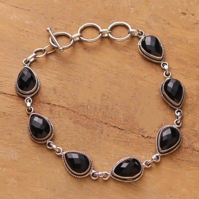 Artisan-Made Classic Black Onyx Link Bracelet from India, 'Puissant Princess'
