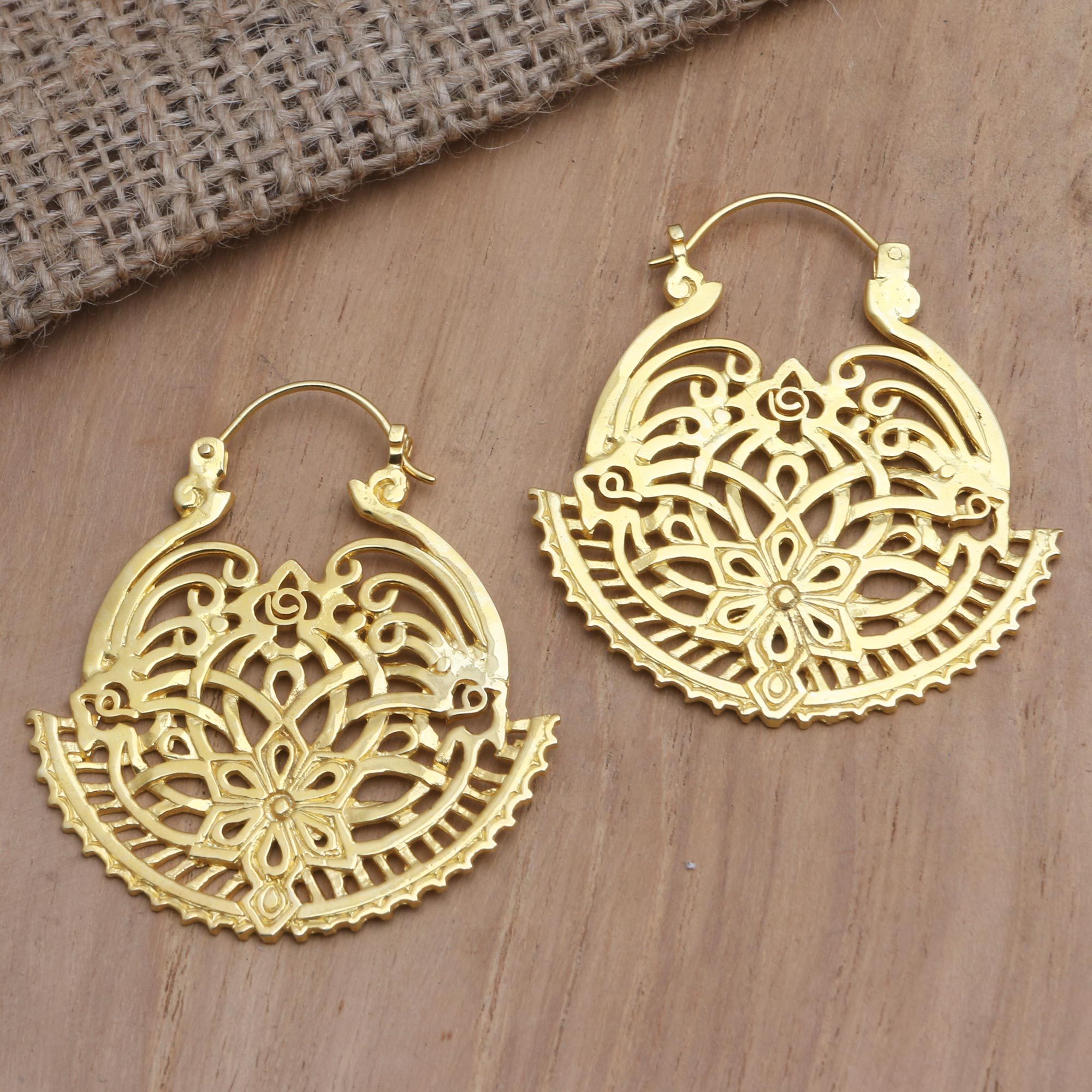 Perfect for a swanky evening out, Dewa Nyoman Oka's beautiful earrings are skillfully engraved with elaborate designs. The Balinese artisan uses 18k gold-plated brass to hand craft the earrings, polishing the precious metal for an eye-catching shine.