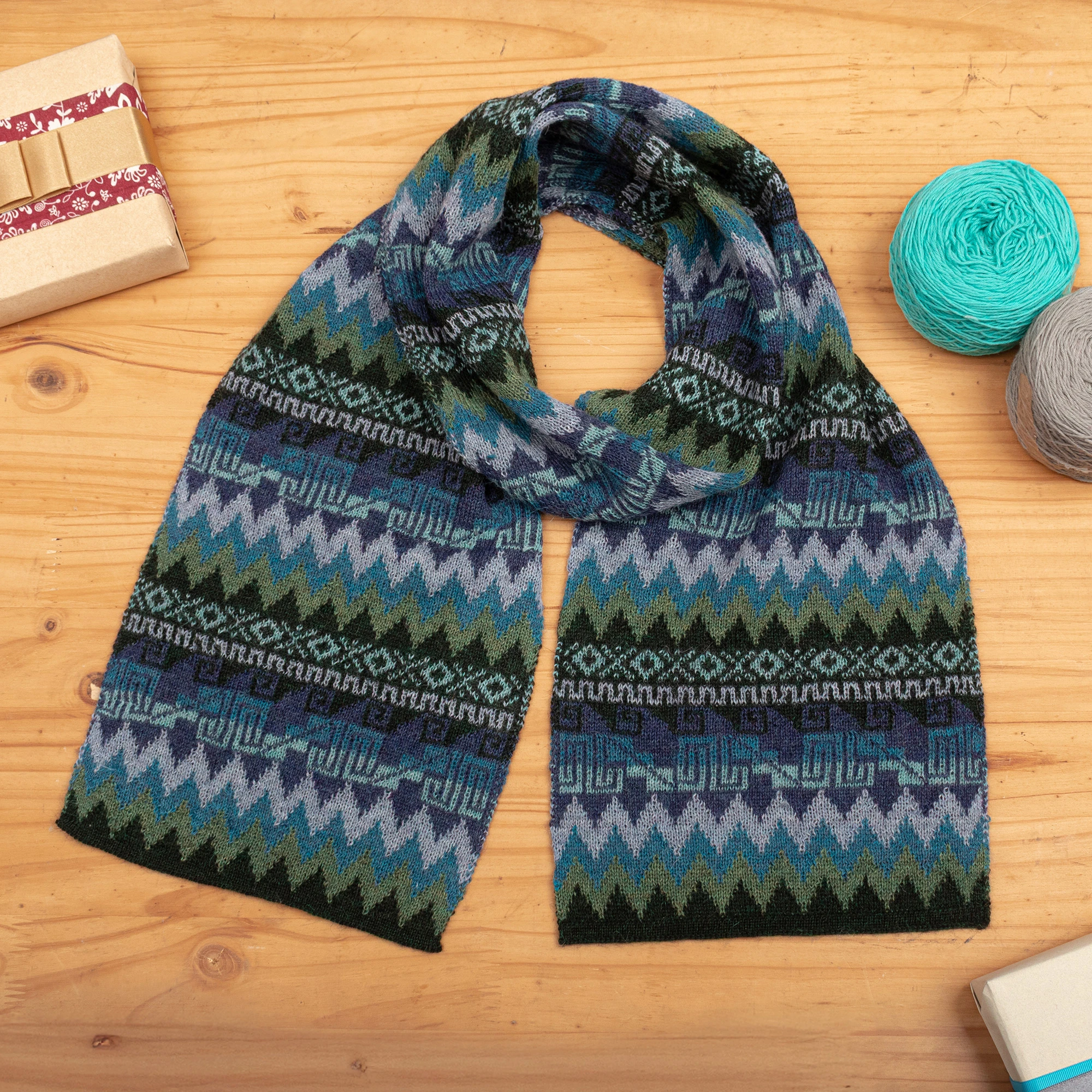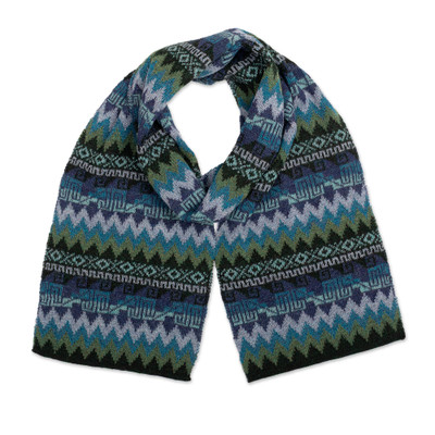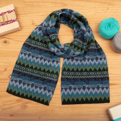 The leaves of the Andean region touch your skin through a 100% baby alpaca scarf, made with traditional techniques. Artisan Alfredo Falcon draws inspiration from the region's classic patterns to weave this soft piece, whose details merge blue, black and green hues.