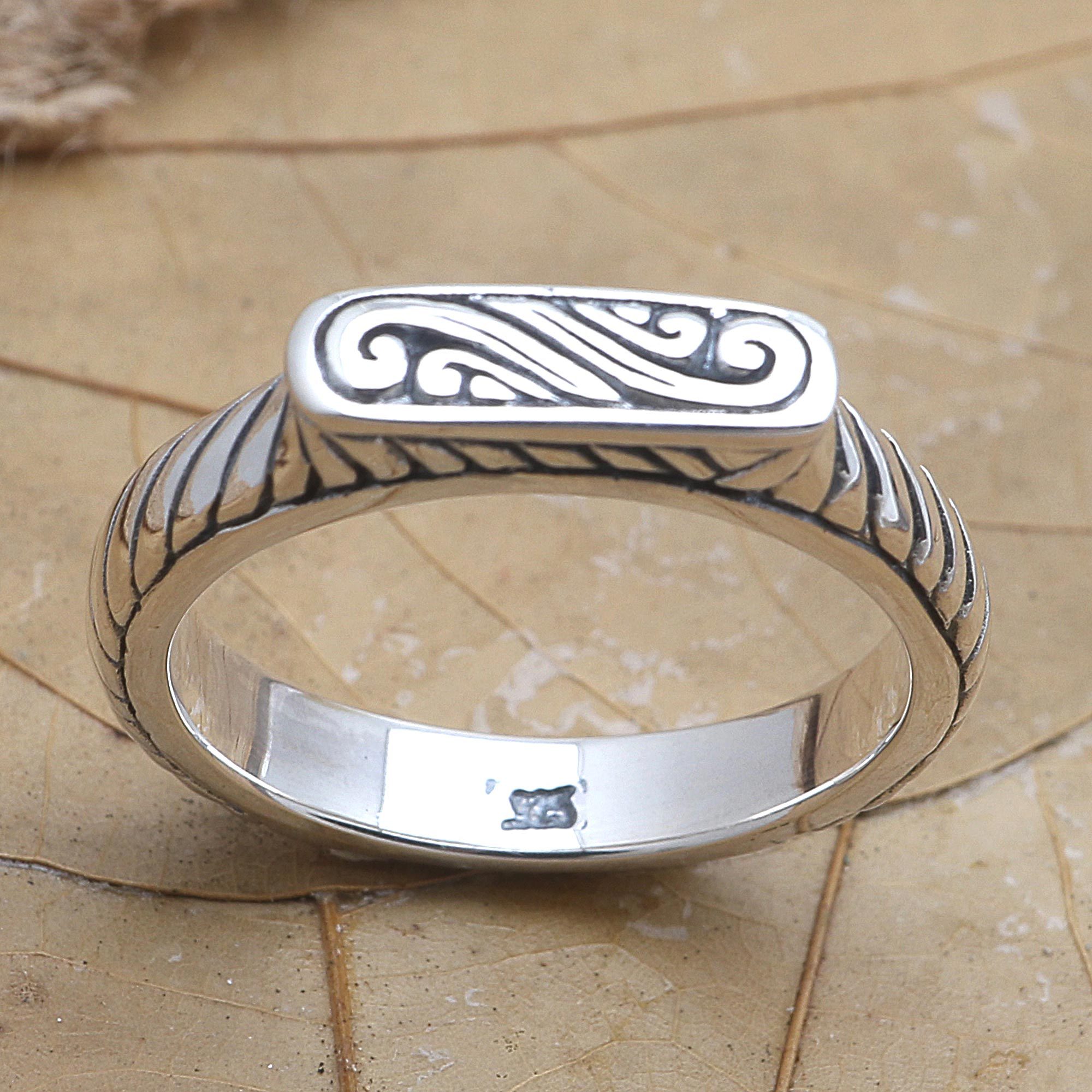 Modernize your jewelry collection with Dewa Arimbawa's unique cocktail ring. Using gleaming sterling silver, the Balinese artisan crafts a raised, oblong crown before engraving the entire surface with traditional Balinese designs.