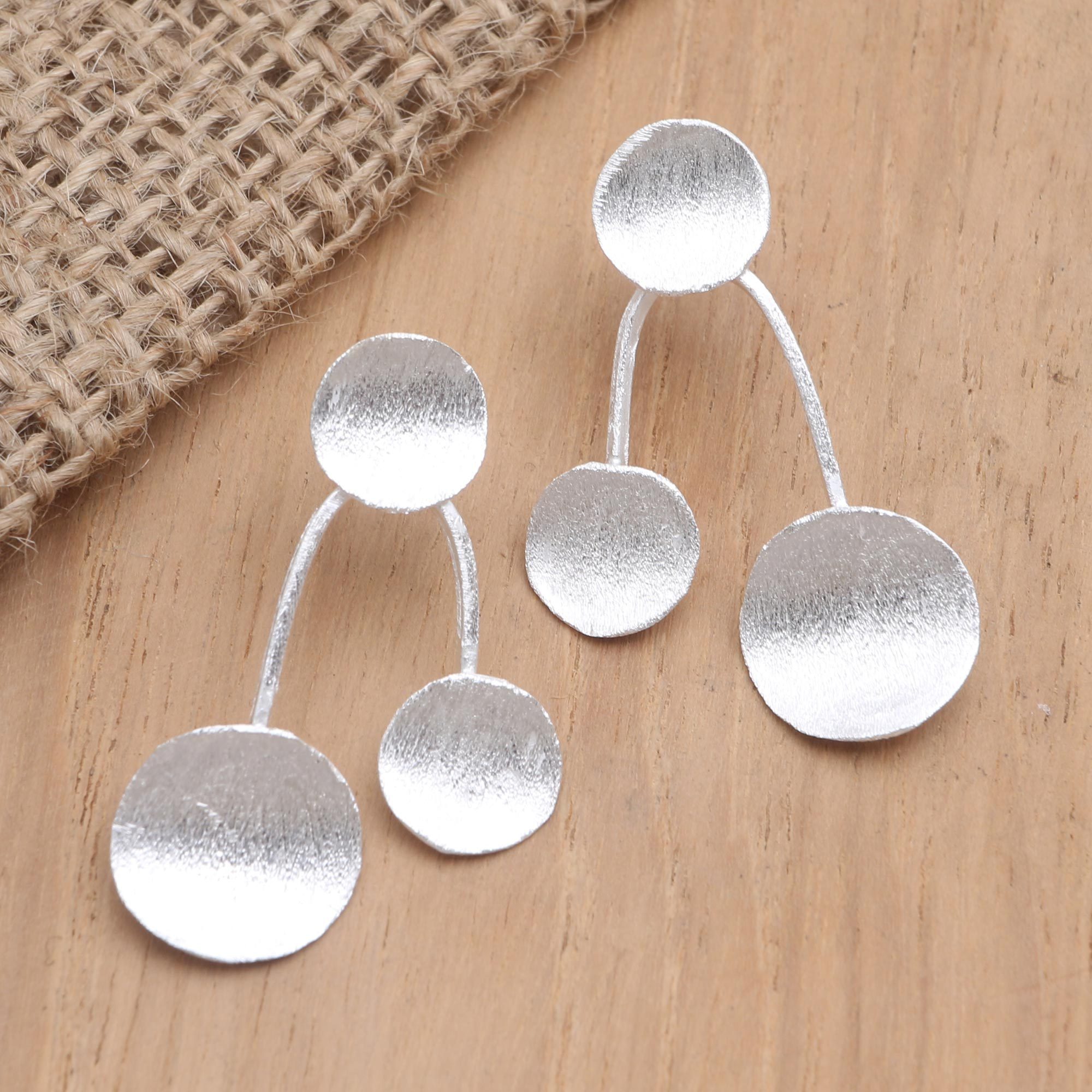 Step outside the expected and slip into unique style with this pair of gorgeous earrings designed by Bali's Desi Antari. The artisan uses bright sterling silver with a brushed satin finish to create the pair, crafting each earring with three coins that shine in the light.